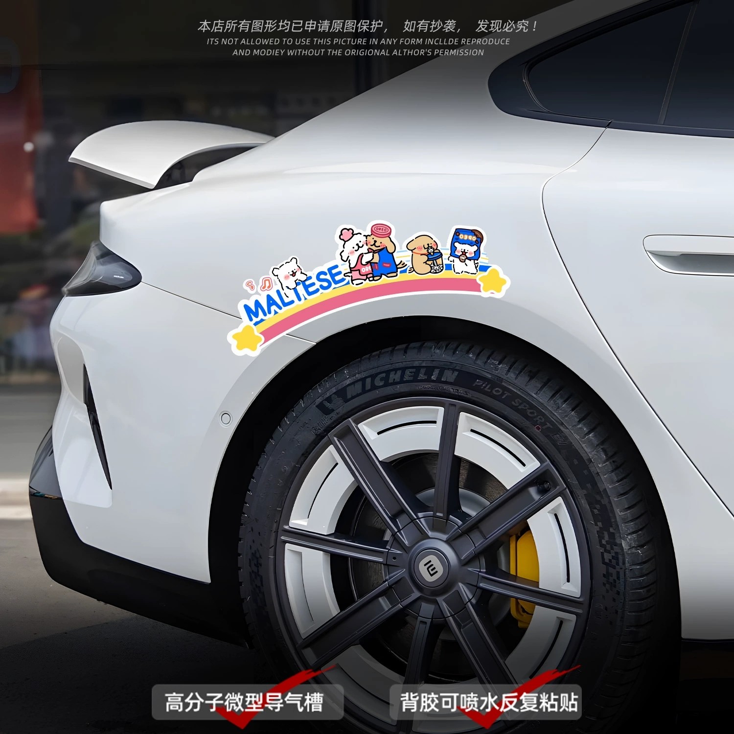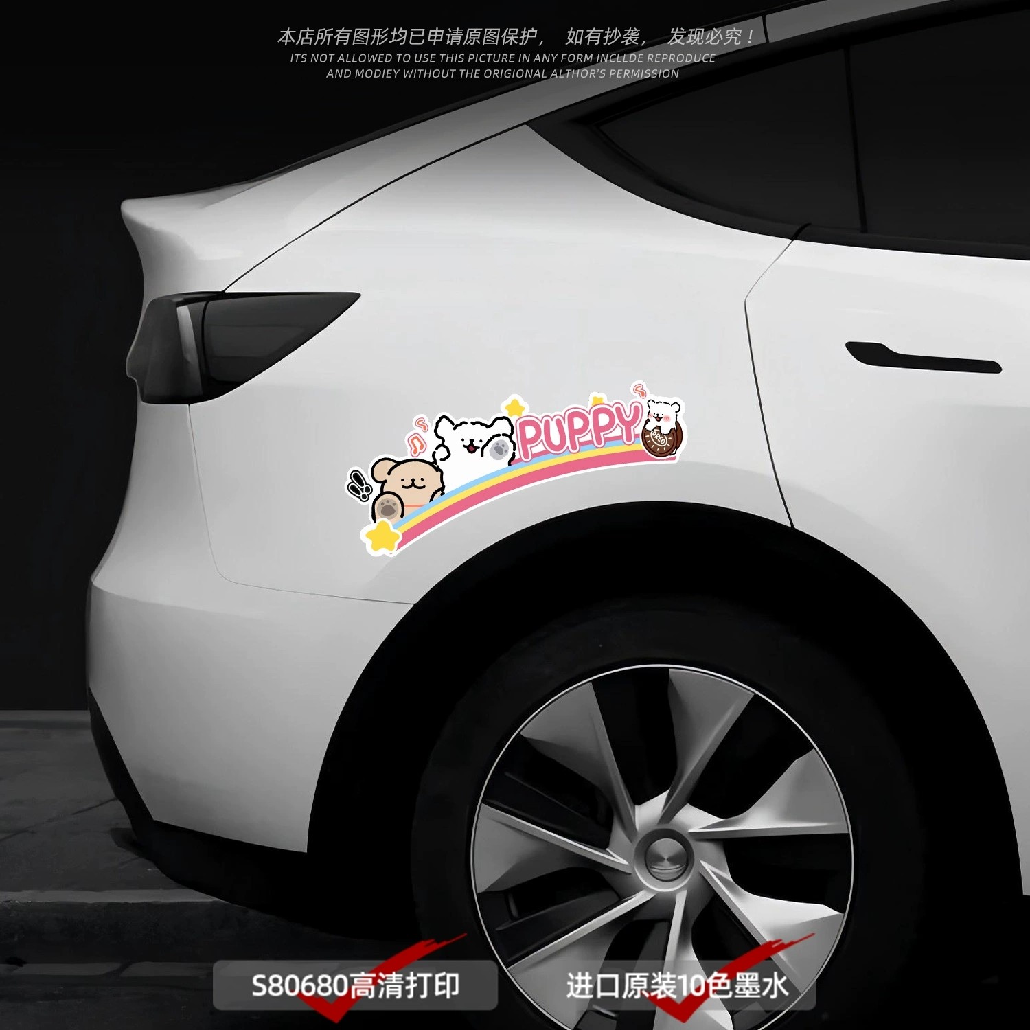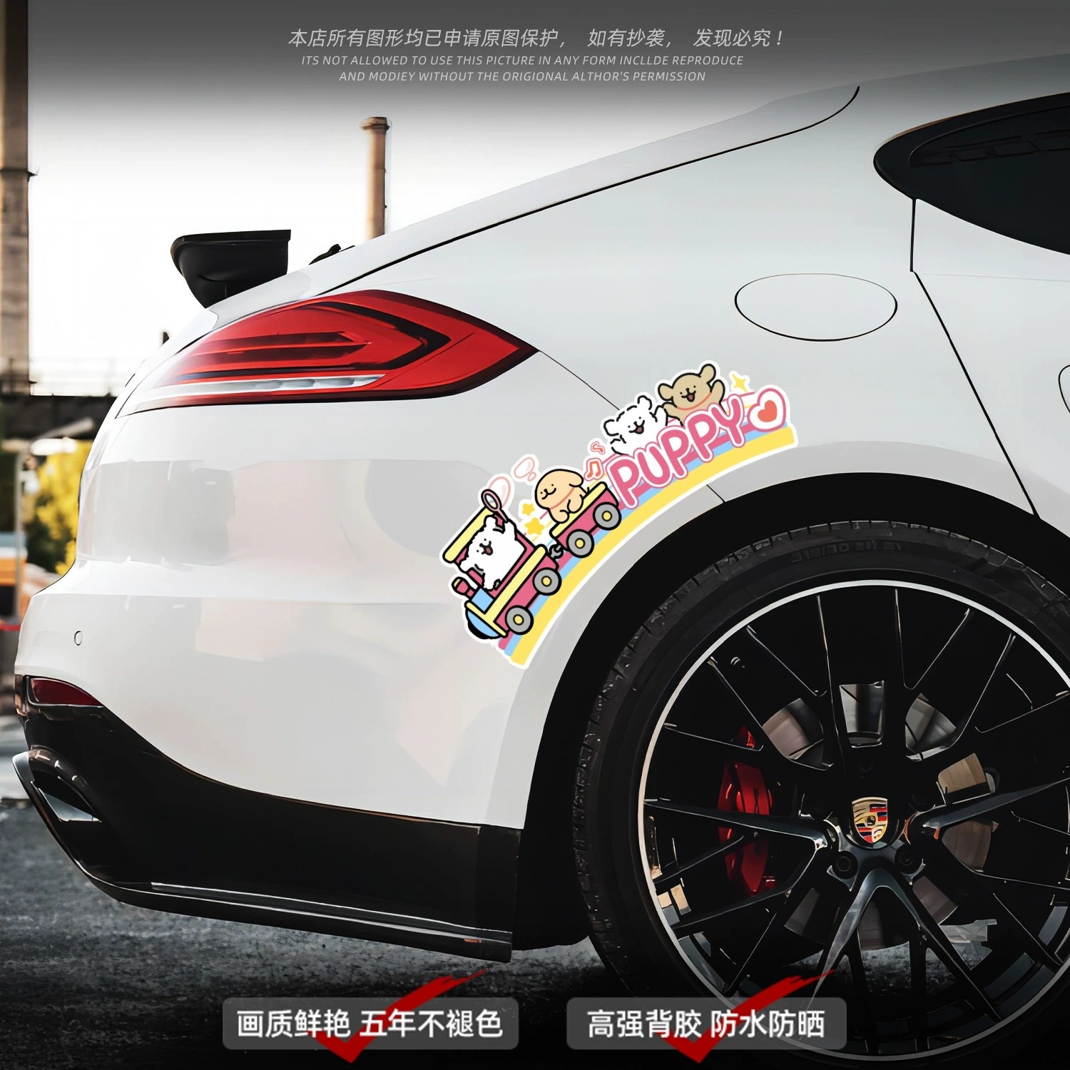 适用于卡通可爱小狗狗汽车轮眉装饰贴画个性创意划痕遮挡防水贴纸