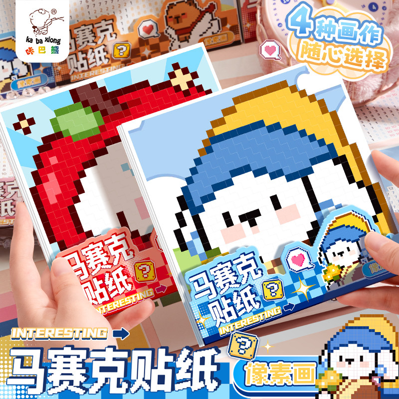 卡皮巴拉马赛克像素风贴纸豆豆本粘贴画女孩拼豆卡通主题儿童手工DIY学生用手帐解压玩具微缩拼图色号贴纸书