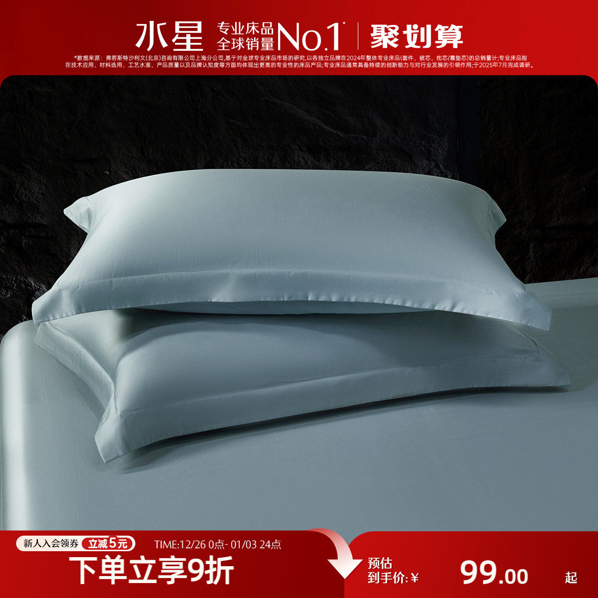 水星家纺A类100支长绒棉对枕套高端贡缎枕头套一对装简约轻奢双人
