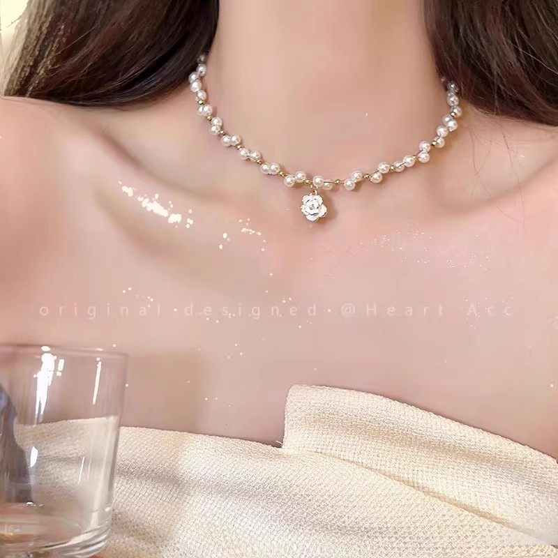 法式贝珠山茶花项链2025高级感网新款锁骨链百搭名媛气质链潮
