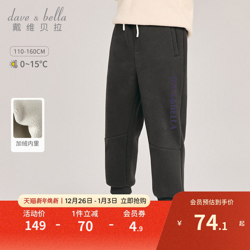 戴维贝拉男童加绒裤子2025新款中大童抗菌运动裤冬装儿童保暖长裤