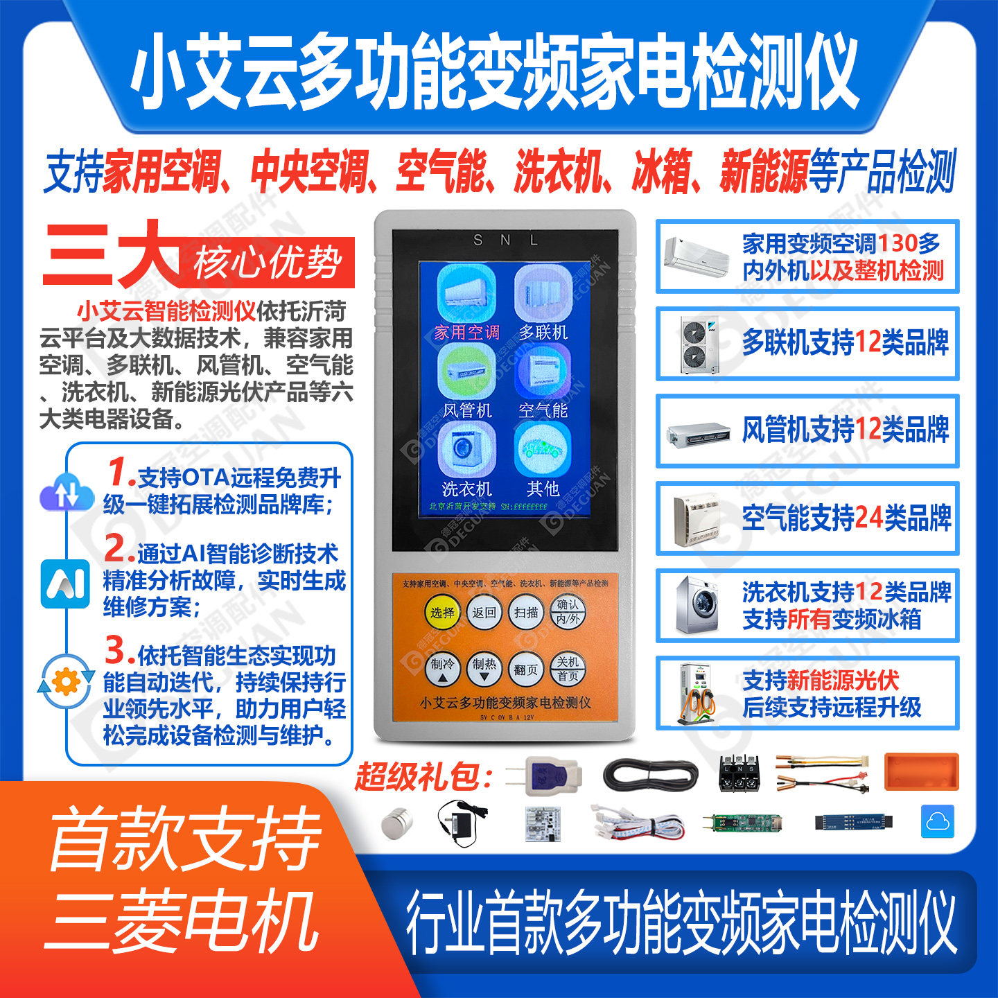 小艾云惠明皓李想科吉思变频空调三五线直流风机压缩机检测修试仪