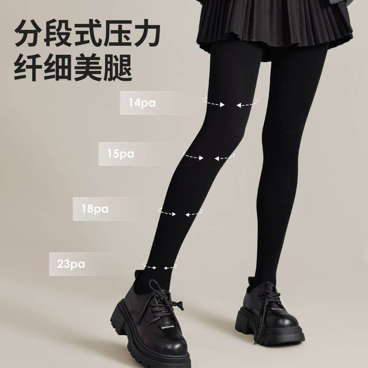 菇娘家热压连裤袜高支棉羊毛打底裤女灰色大码秋冬黑色保暖瘦腿袜