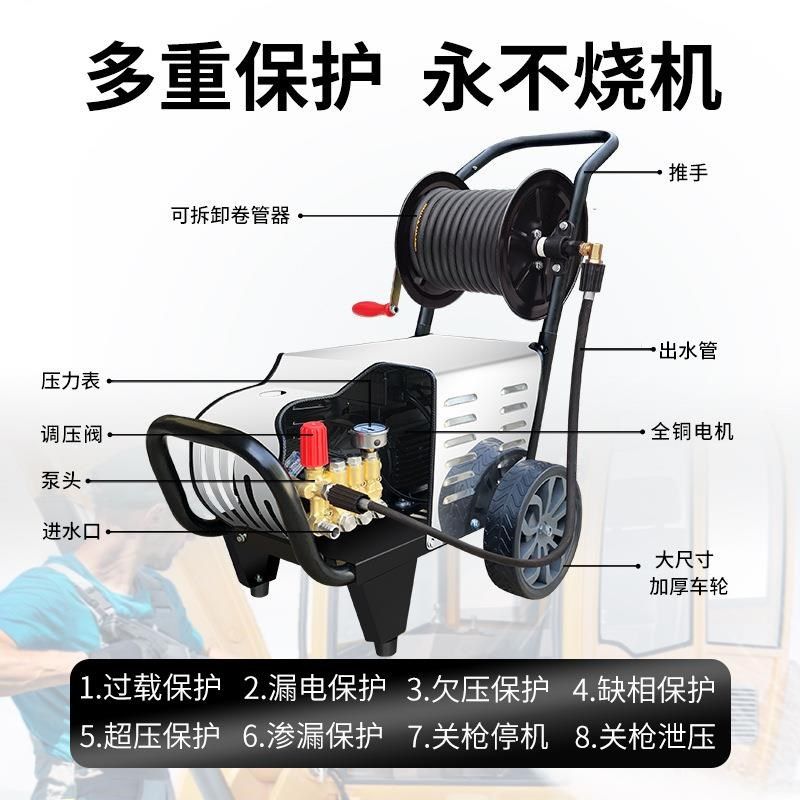 高压洗车机商用220大功率380v洗车殖店养场洗车器清UV带洗机卷管