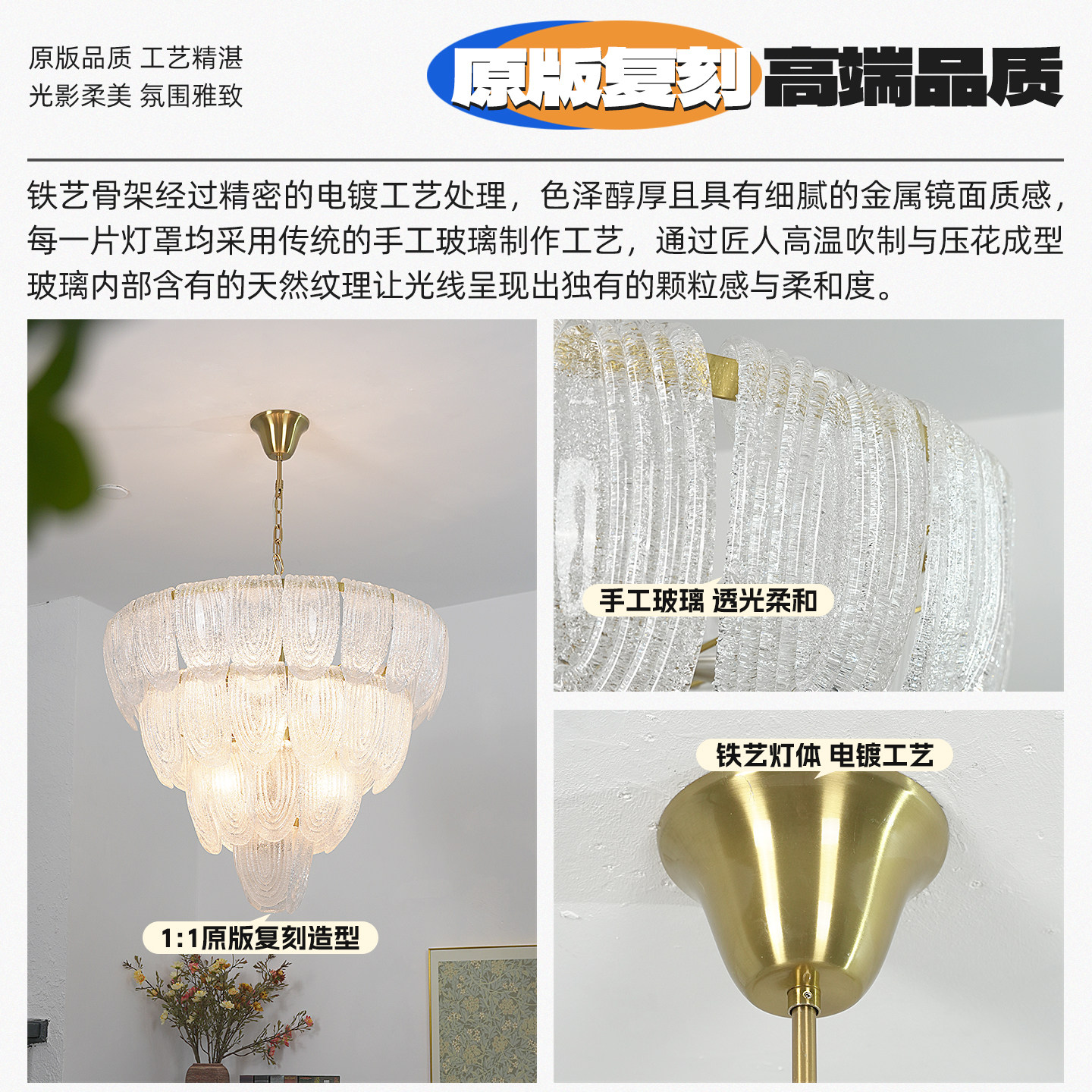 法式中古murano穆拉诺玻璃吊灯复古高级感餐厅灯轻奢艺术卧室灯具