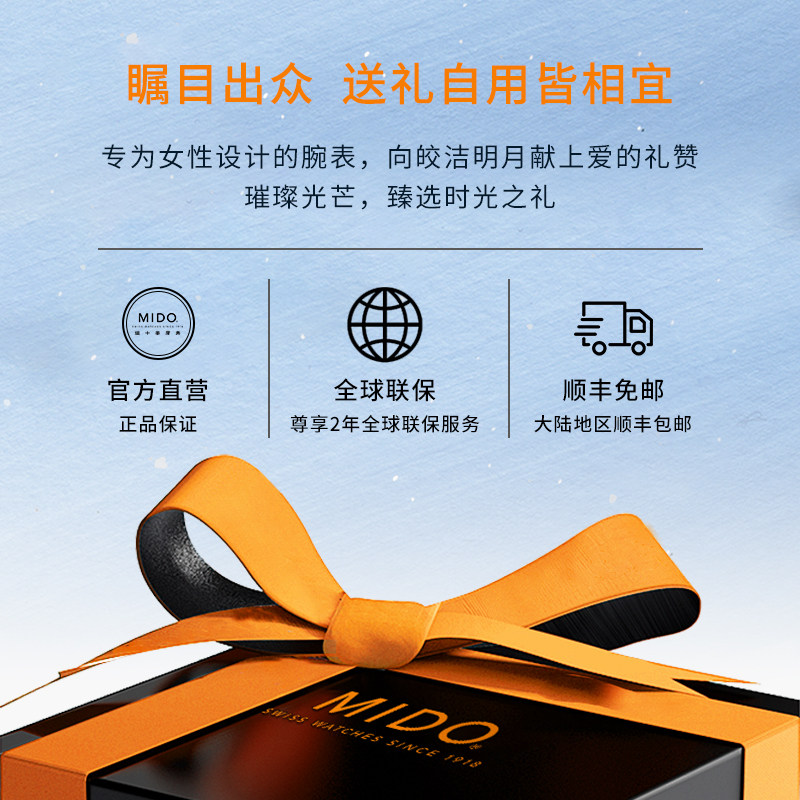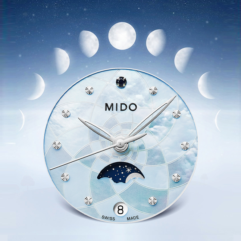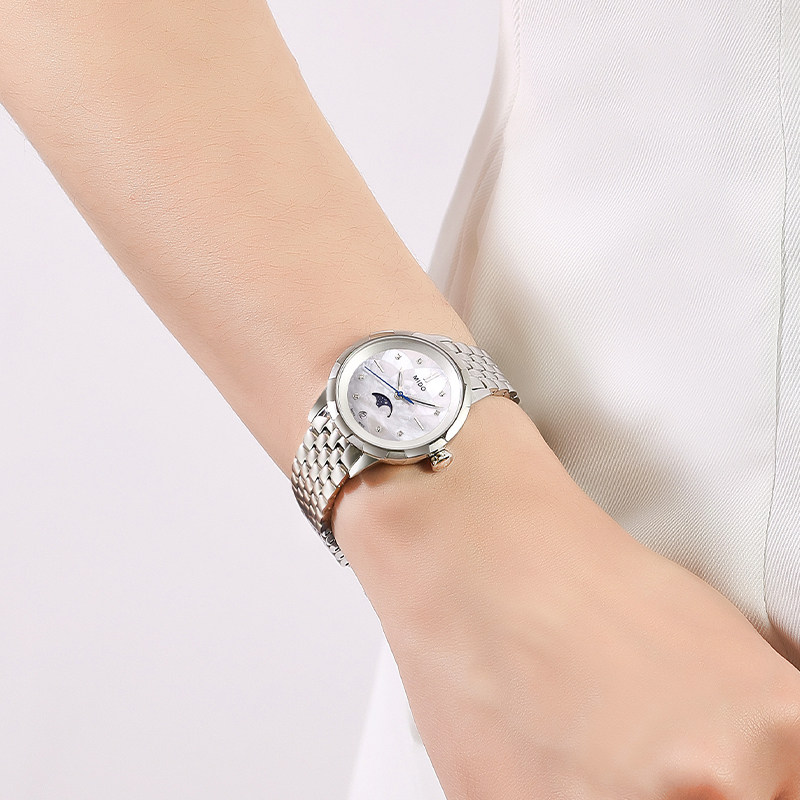 Mido美度手表女士新款花淅月相女款时尚石英女表轻奢礼物真钻贝母