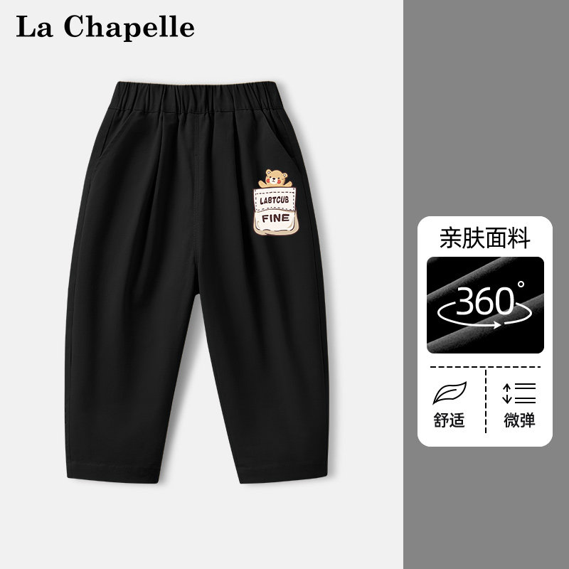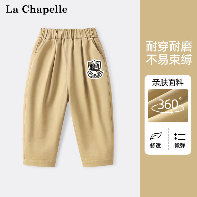 拉夏贝尔男童裤子春秋宝宝休闲裤2024新款儿童工装裤小童卡其长裤