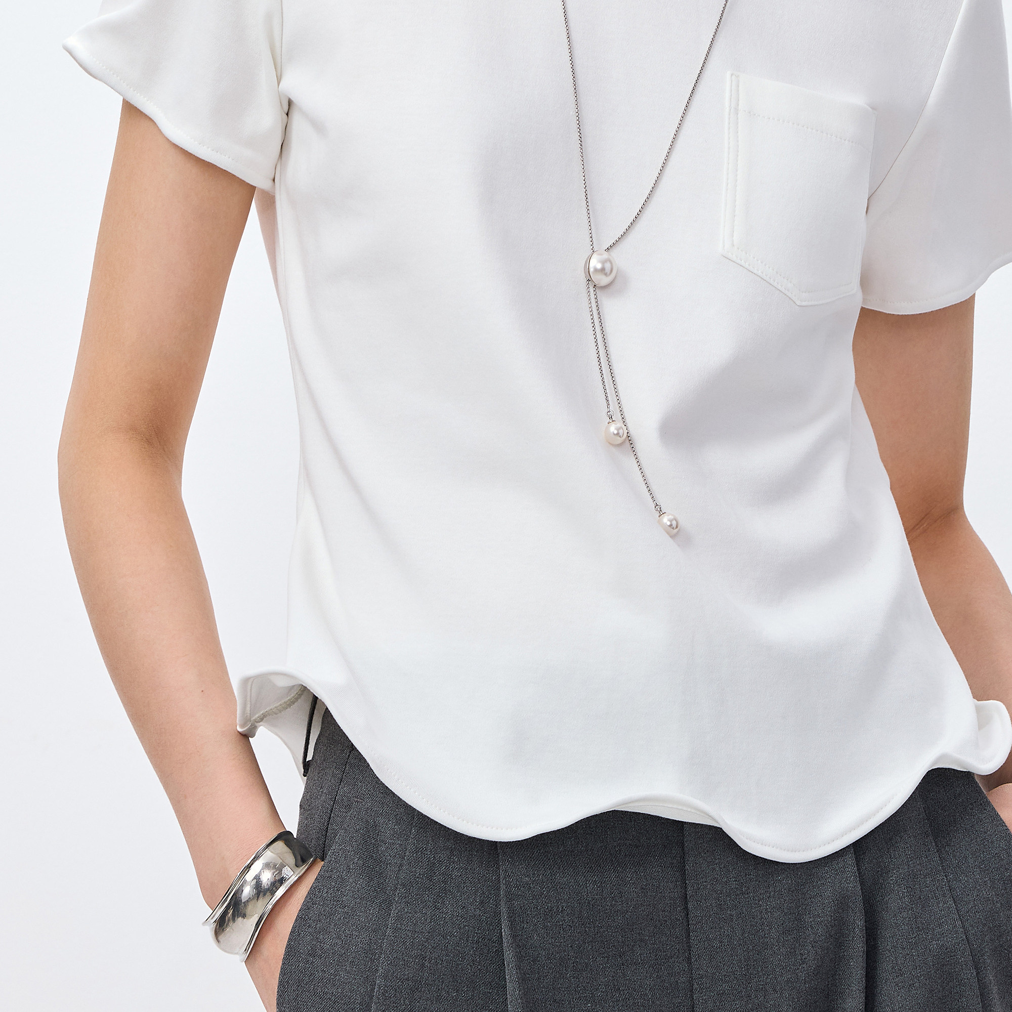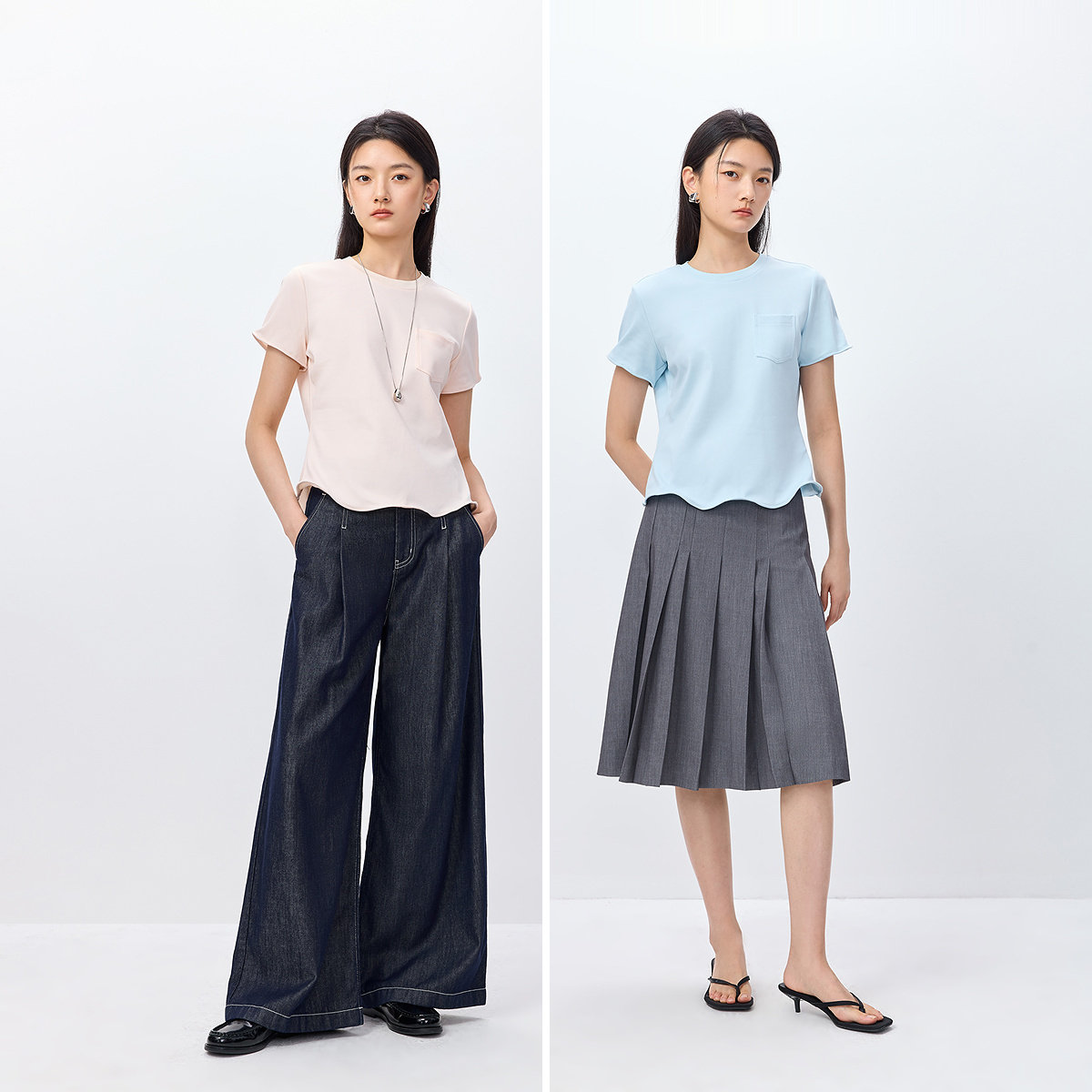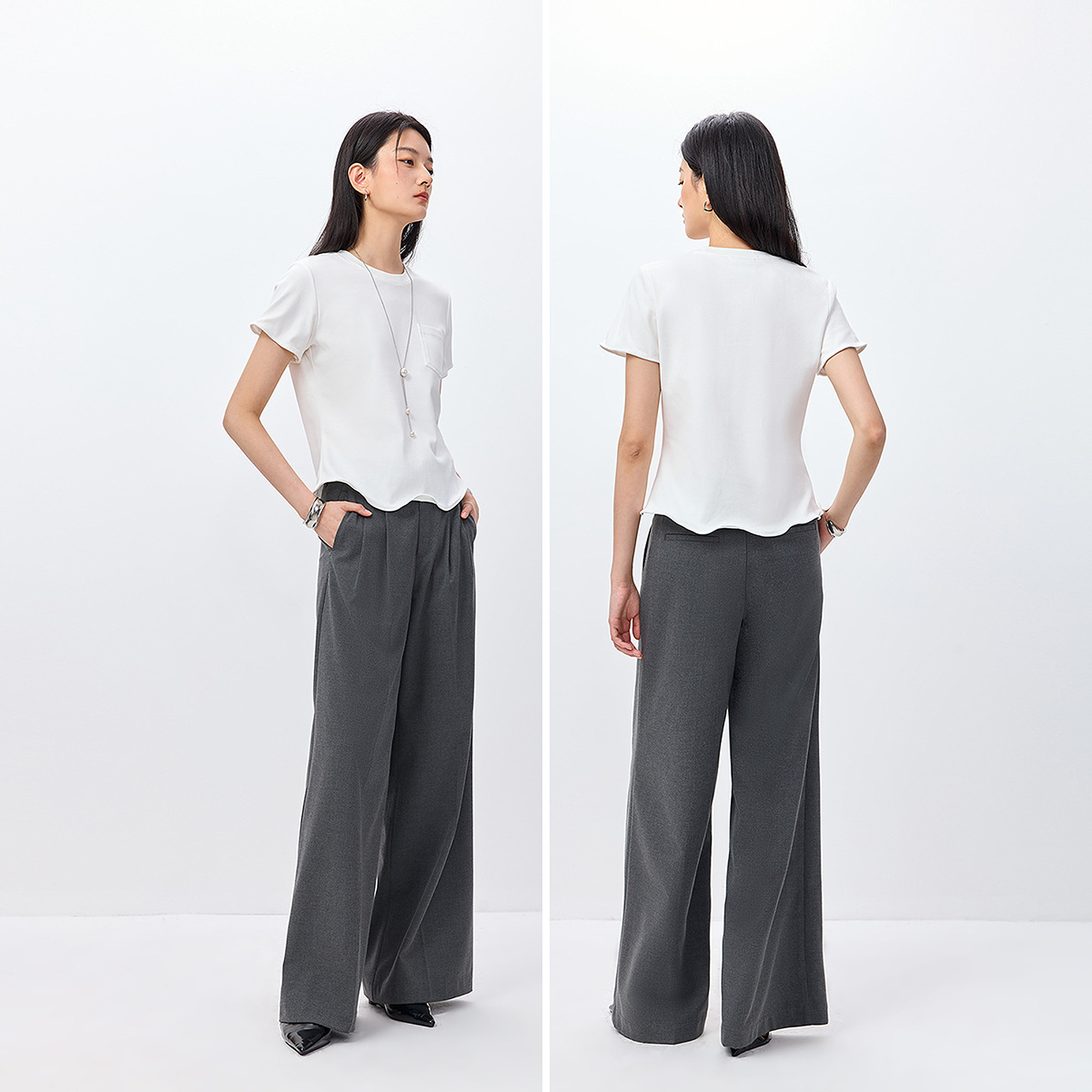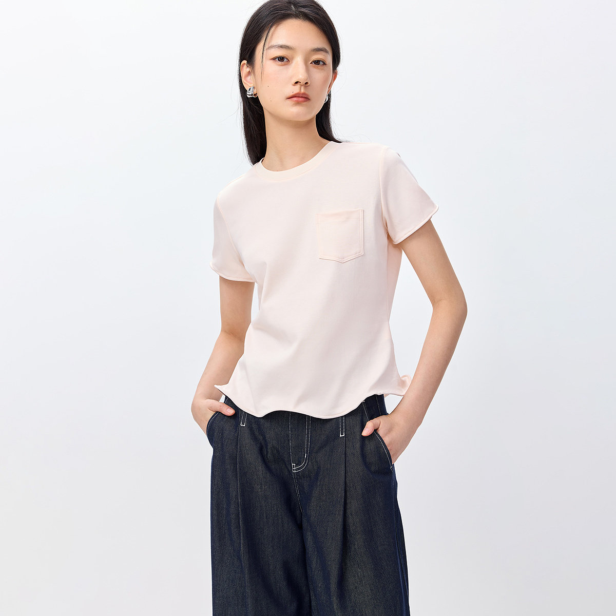 扭扭乐TEELILY2026春新款女装设计感正肩休闲百搭通勤浅色短袖T恤