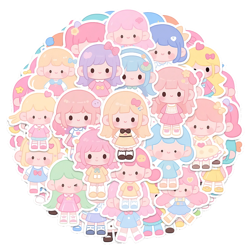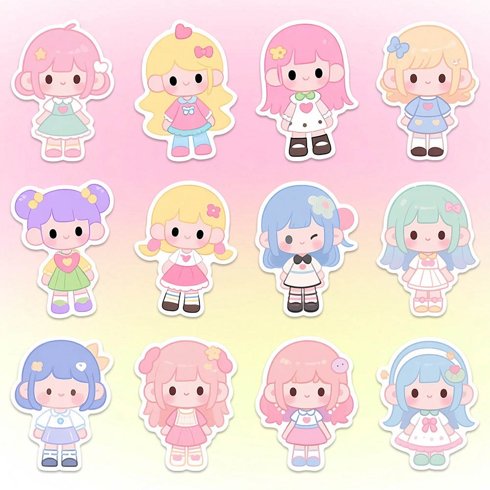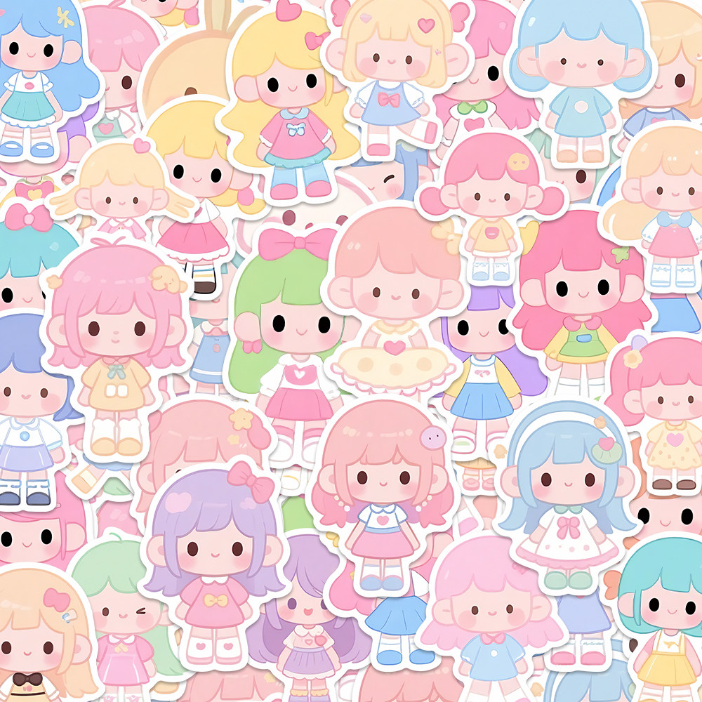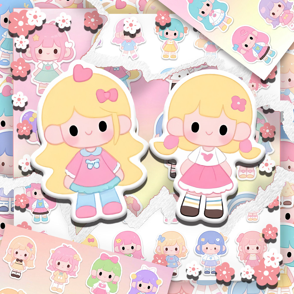 96贴可爱洋娃娃新款卡通女孩贴纸儿童趣味呆萌小女生创意装饰贴画