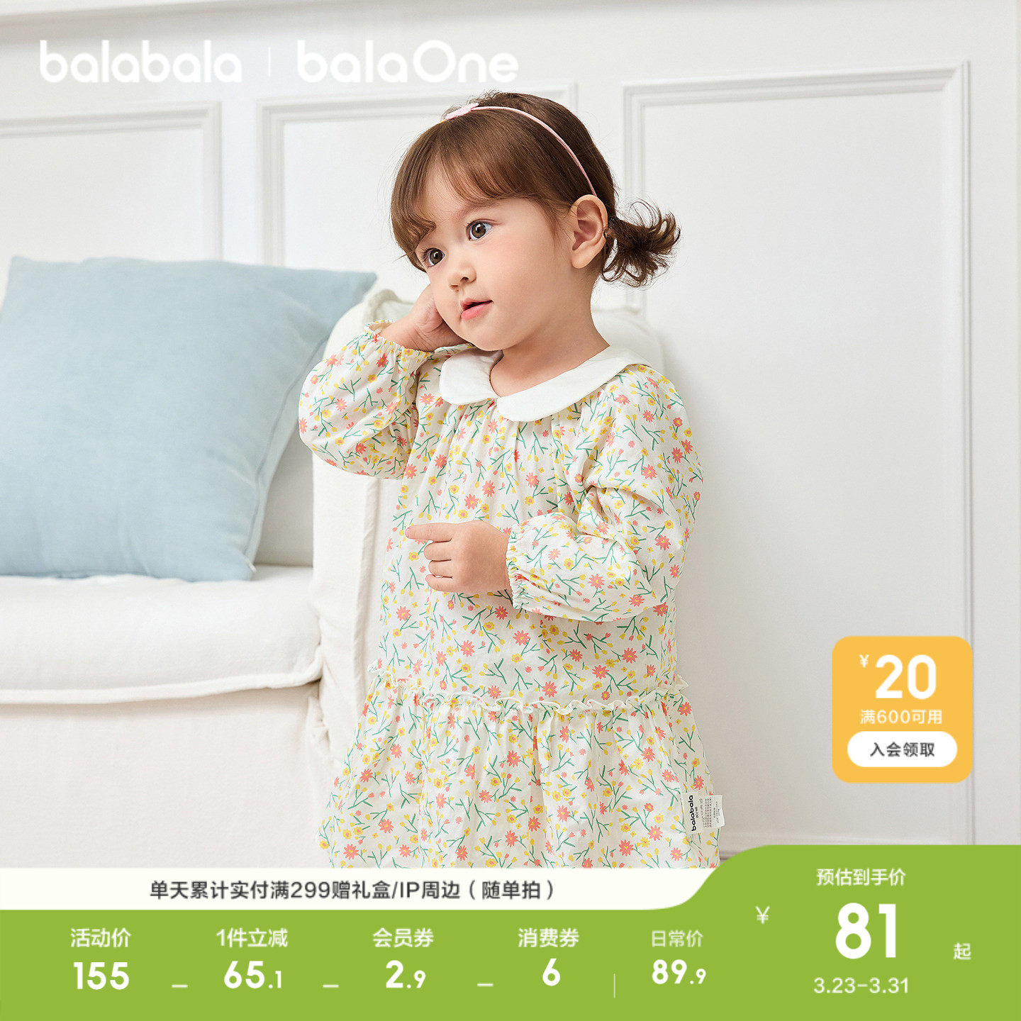 【balaOne】巴拉巴拉童装儿童连衣裙女童2026新款春装满印短裙子