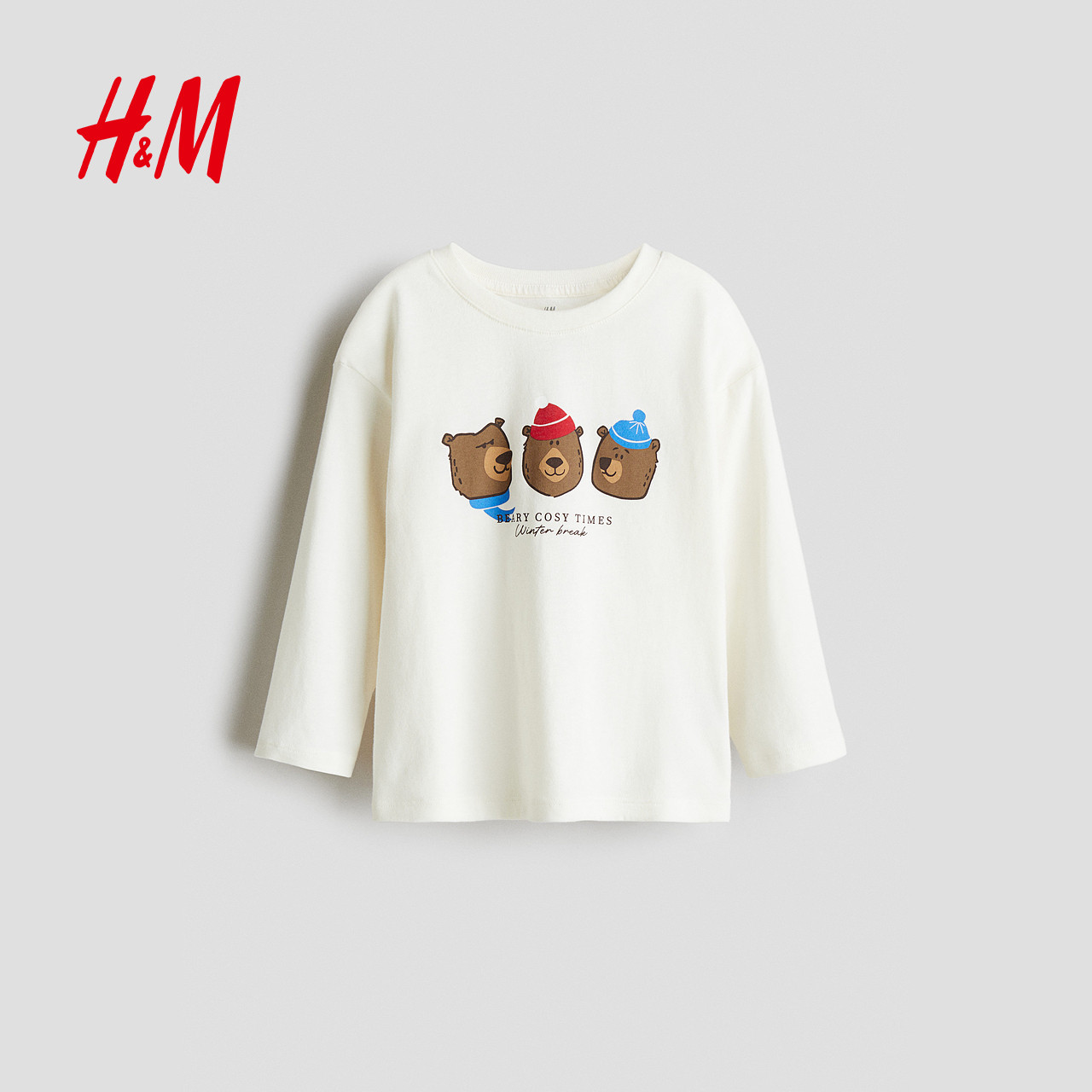 HM童装儿童男童T恤春季图案细节棉质内搭打底衫1304057