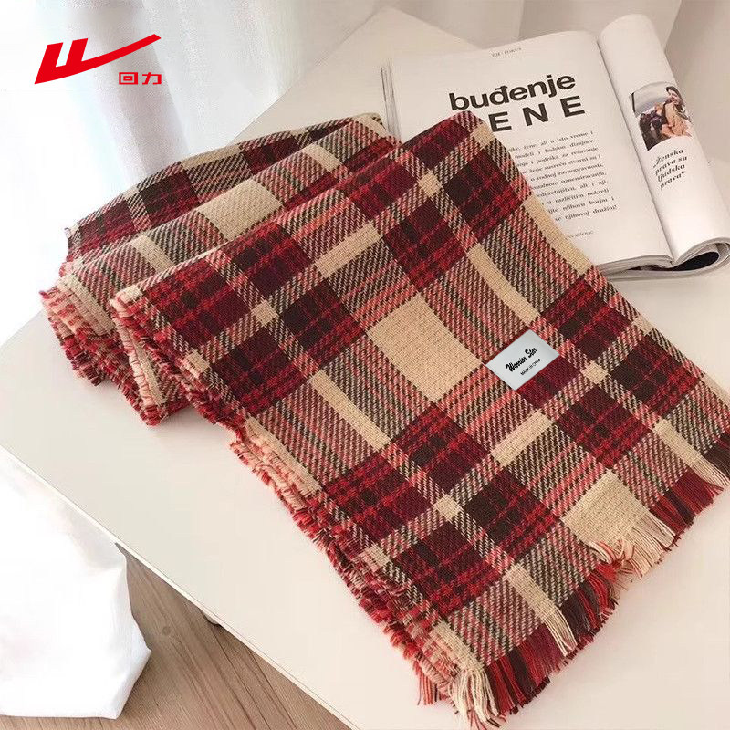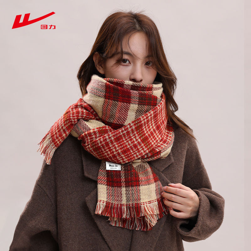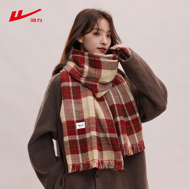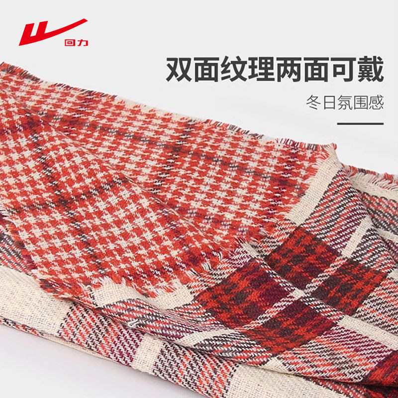 回力围巾女秋冬季韩版百搭双面格子加厚保暖围脖披肩两用外搭潮流