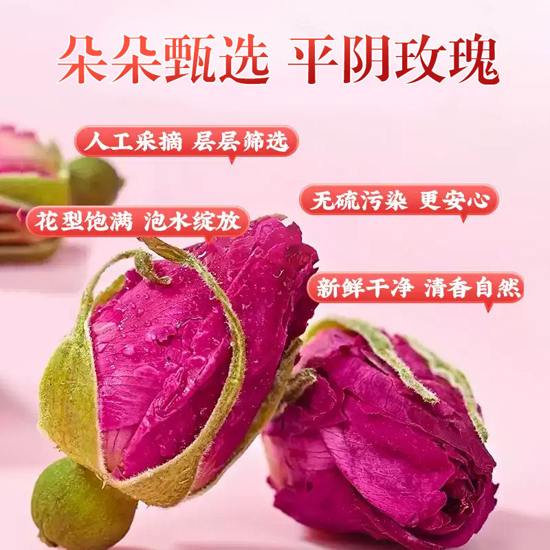 紫金玫瑰散装花冠50g 山东平阴玫瑰大朵干花代用花草食用花瓣茶叶