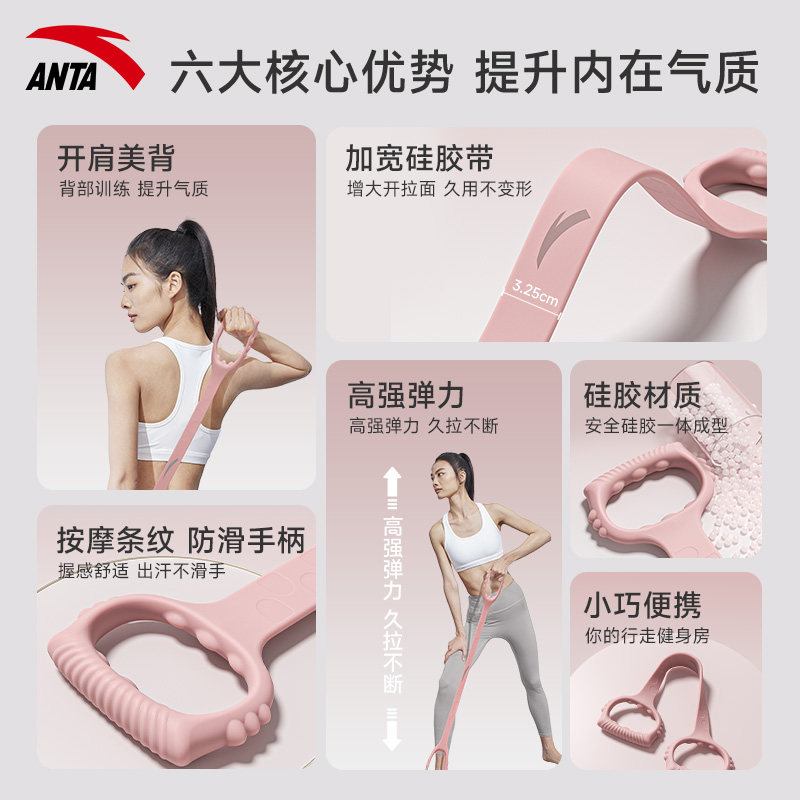 安踏8字拉力器拉伸拉力绳开肩美背练背拉伸女健身家用瑜伽弹力带
