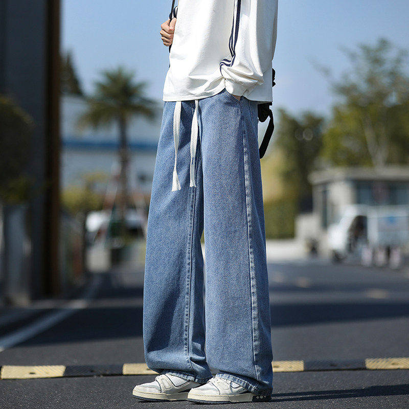 阔腿牛仔裤男士2025春秋新款美式复古宽松大码冬季休闲直筒裤子男