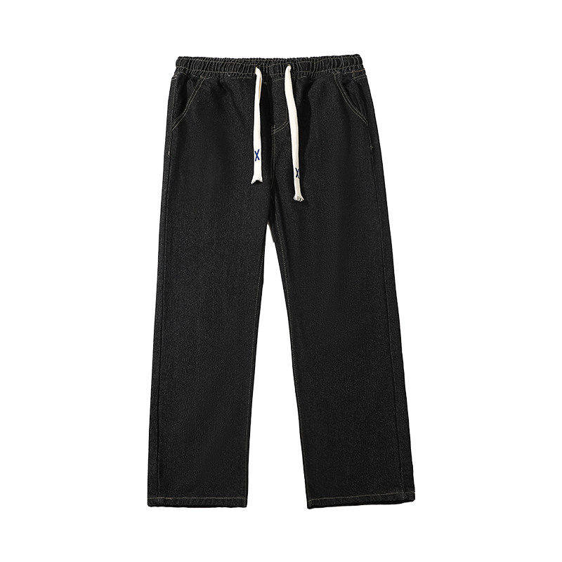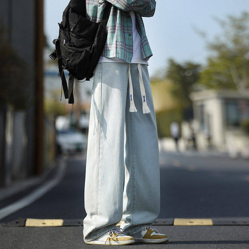 复古牛仔裤男宽松直筒松紧腰2025年春秋季新款潮牌阔腿男生长裤子