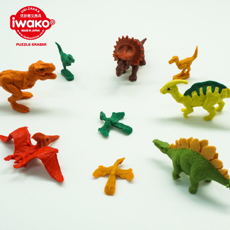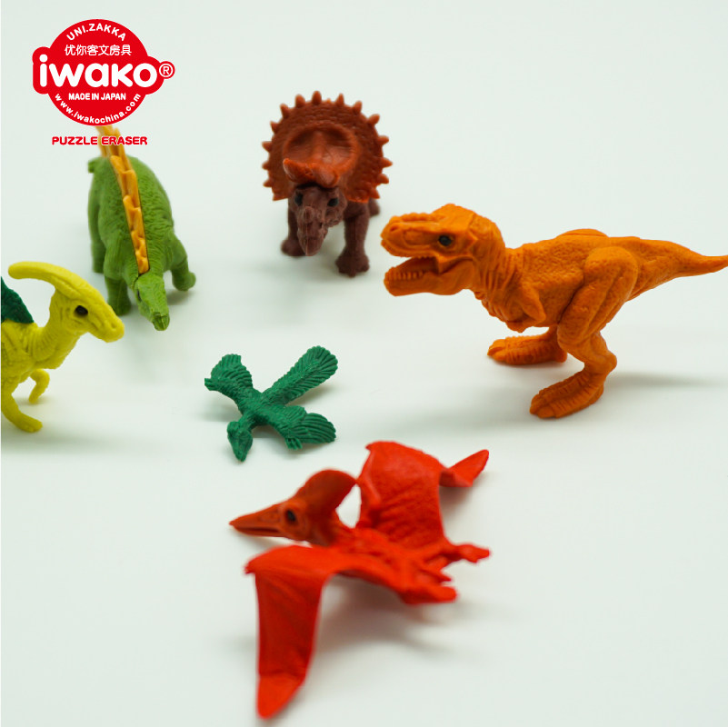 IWAKO岩泽日本卡通动物造型拼装学生铅笔橡皮擦恐龙世界橡皮益智