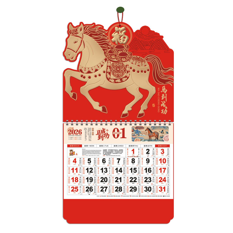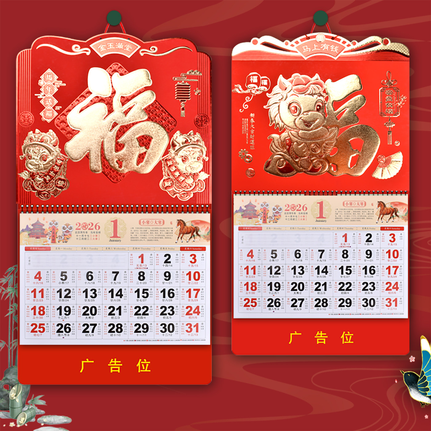 挂历2026年福字马年挂墙日历家用定制公司广告大号创意金箔中国风
