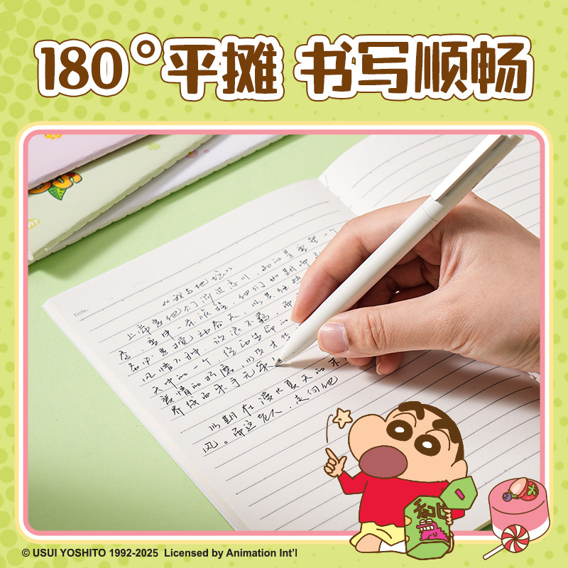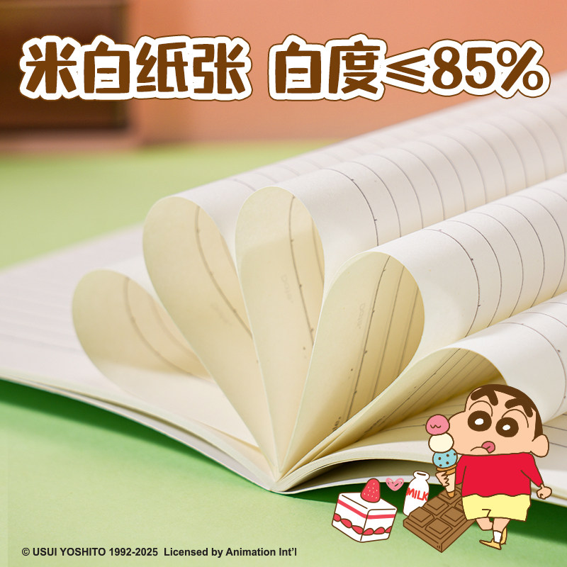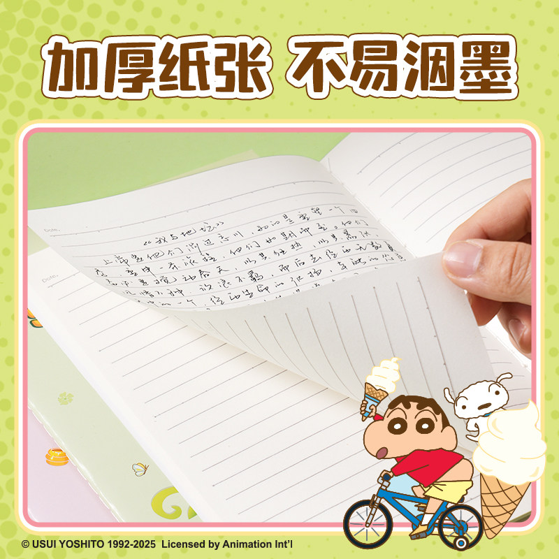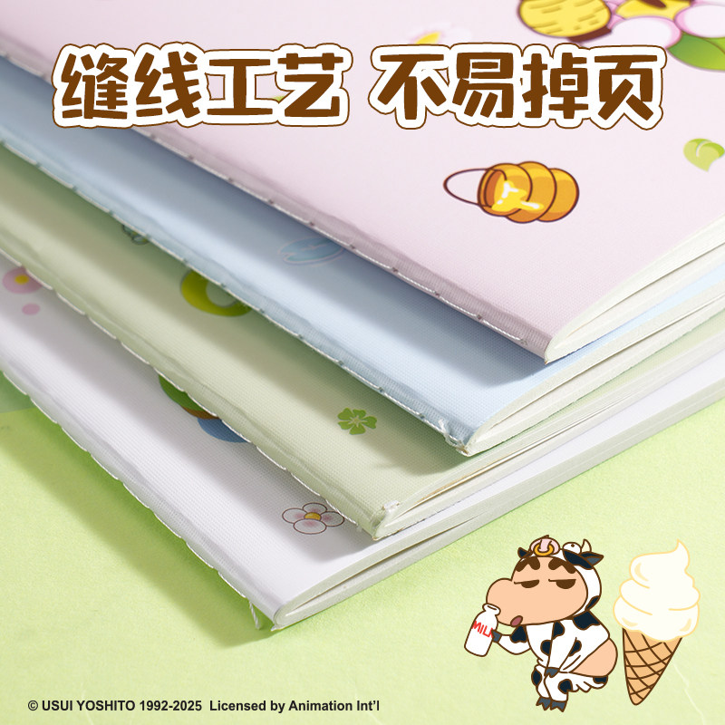 【2件7折】得力蜡笔小新联名笔记本子A5学生练习本可爱记事本学生缝线本加厚纸张车线本子简约创意四本装