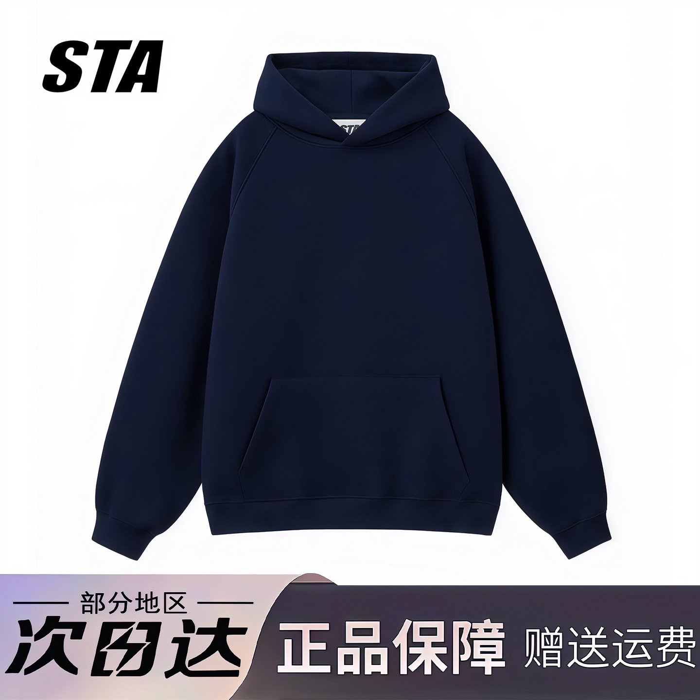 STA旗舰店基础纯色连帽卫衣男女秋冬季美式潮牌纯棉加绒灰色外套
