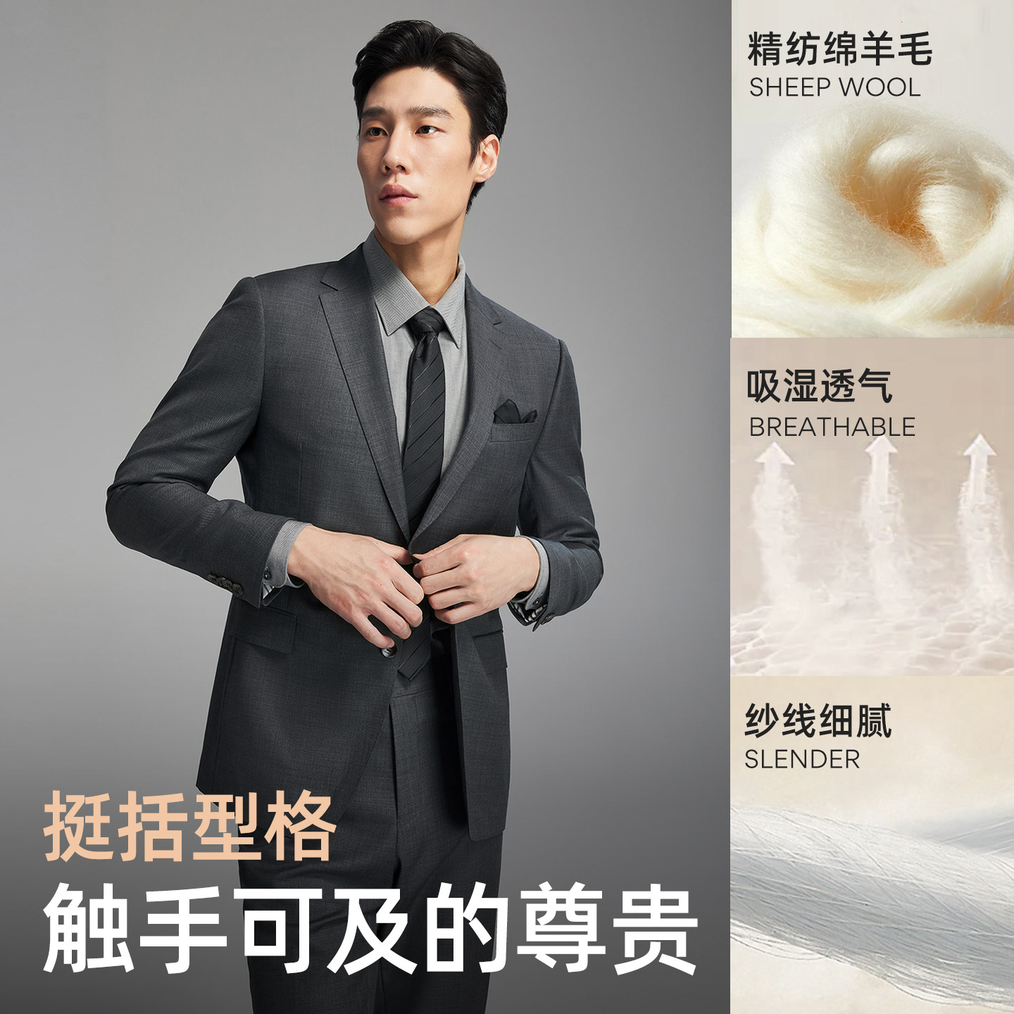 雅戈尔西服秋季新款男士高性价比婚庆商务休闲时尚纯羊毛西装外套