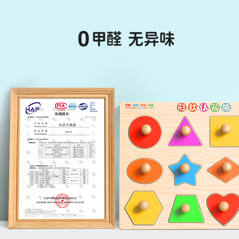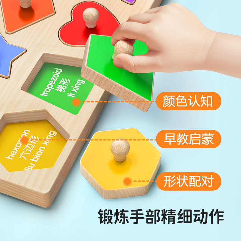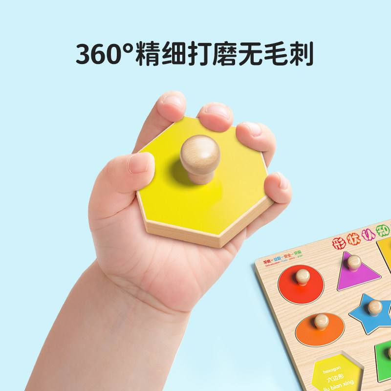手抓板拼图0到3岁蒙氏早教益智玩具形状配对积木儿童的专注力训练