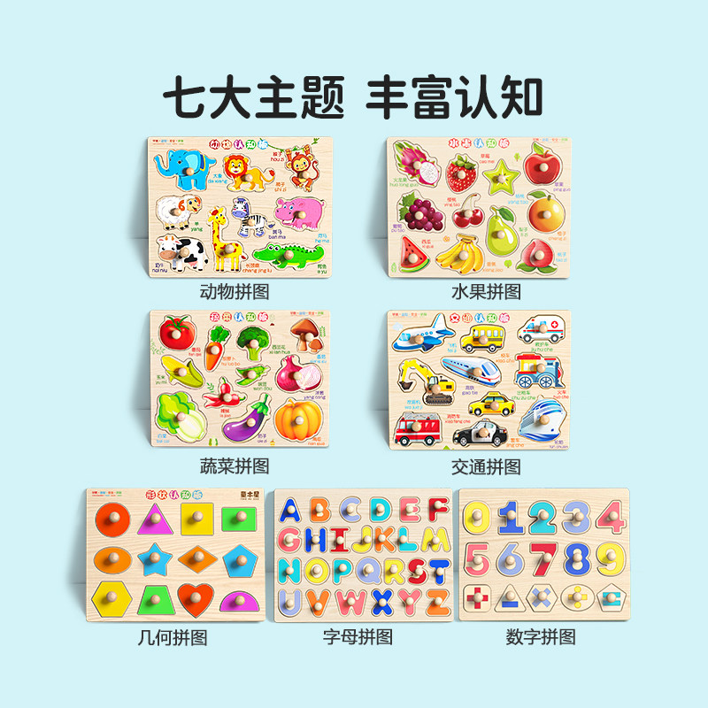 手抓板拼图蒙氏早教益智玩具嵌板儿童认知配对一岁半宝宝婴儿积木