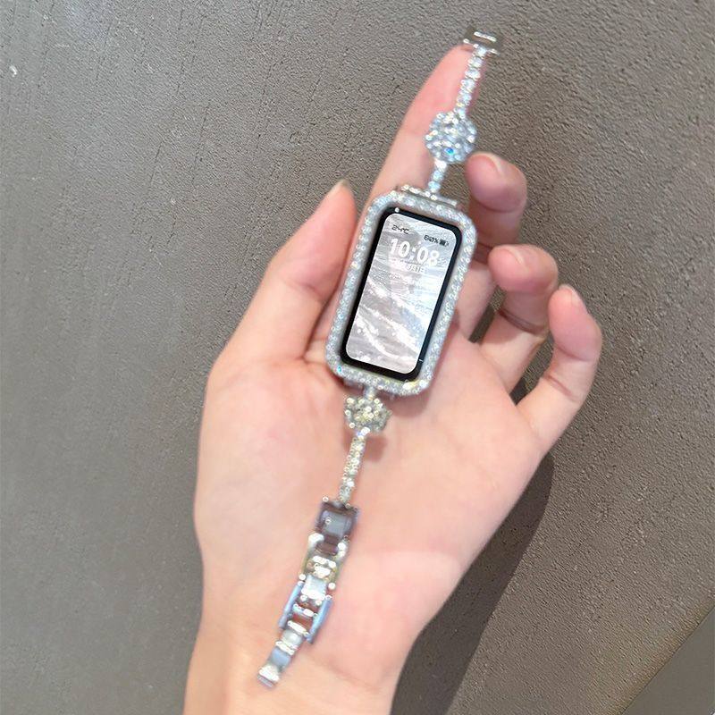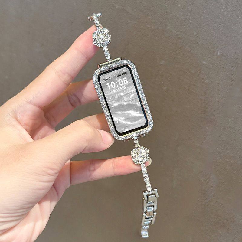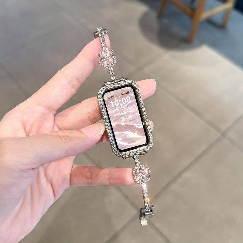 适用华为手环10表带9NFC新款山茶花镶钻表链8代腕带荣耀9智能运动夏天高级感女生小众替换表链带