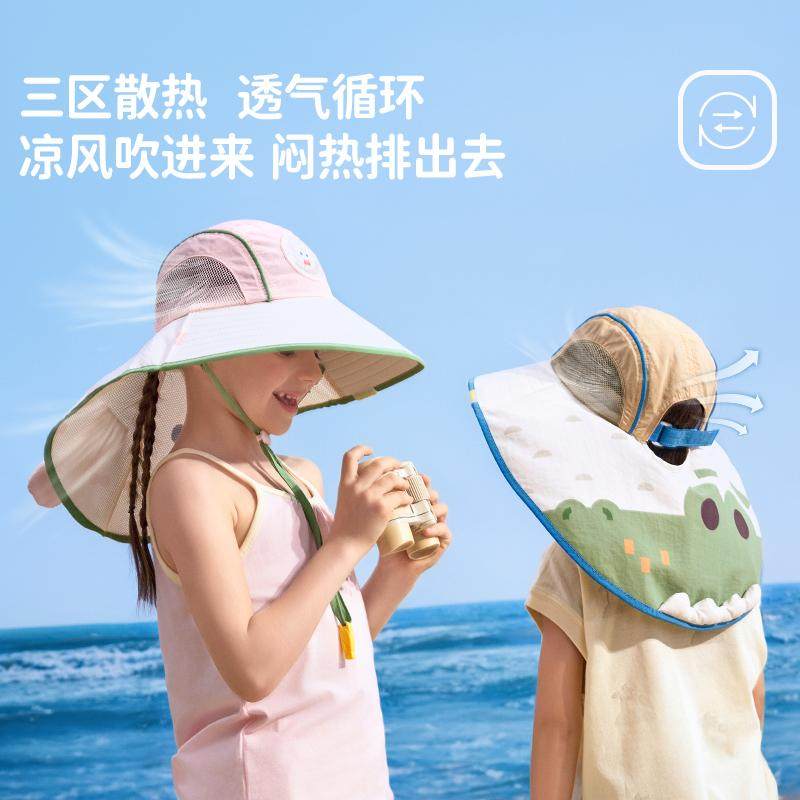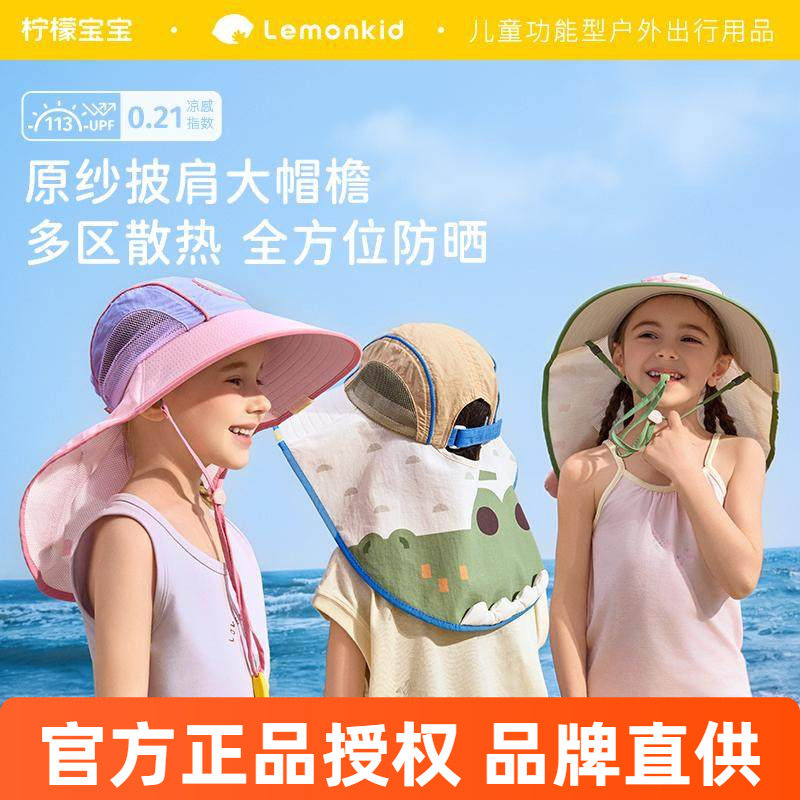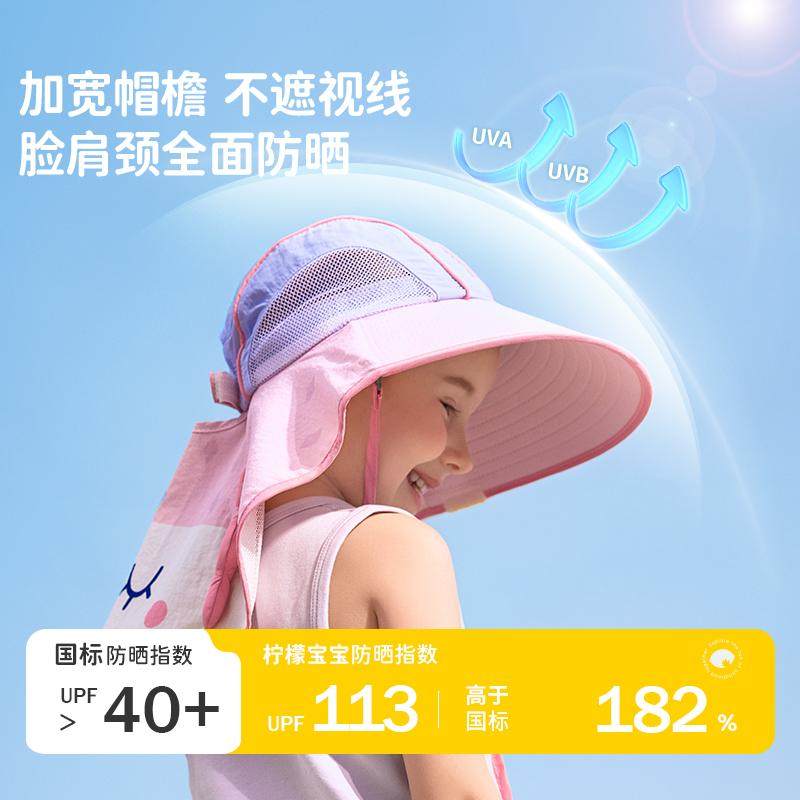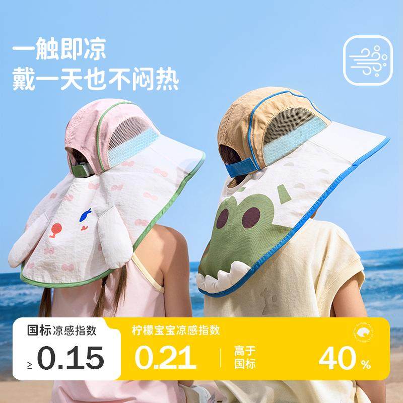 柠檬宝宝儿童防晒帽男女童防紫外线小孩海边出游沙滩遮阳帽披肩帽