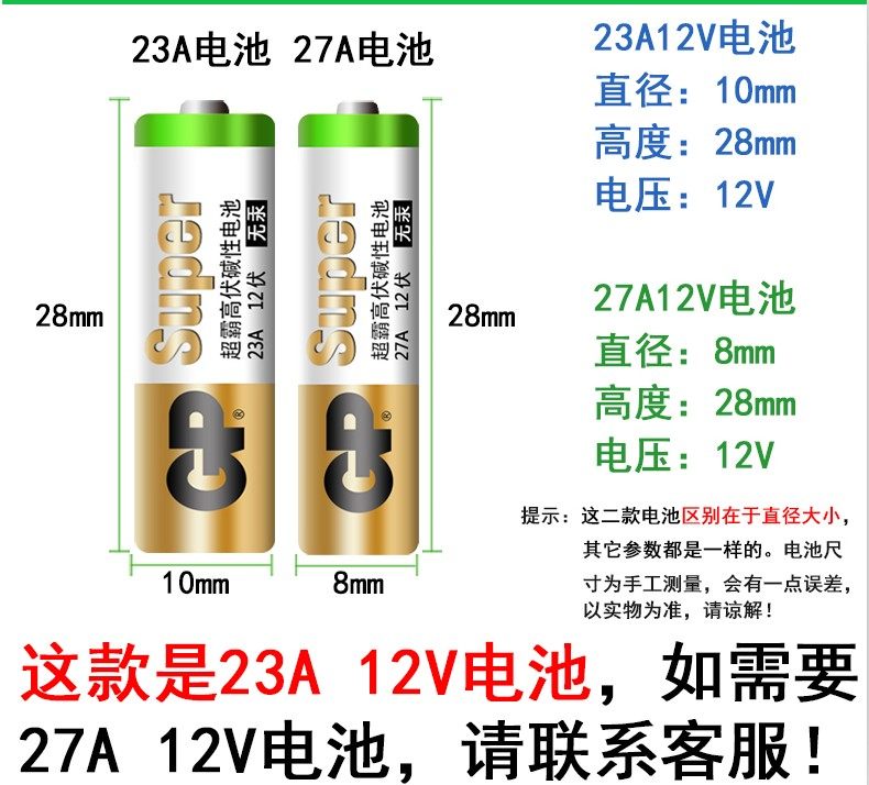 GP超霸23A碱性电池12伏防盗器12V汽车遥控器引闪器门铃吊灯卷帘门