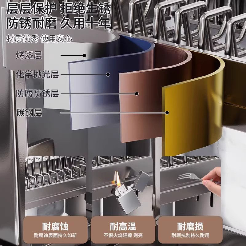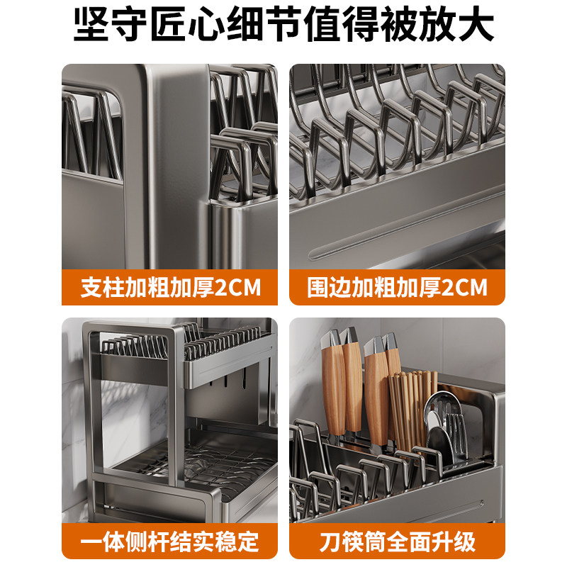 304不锈钢厨房碗架沥水收纳架多功能台面放碗放筷盘碟置物篮碗柜