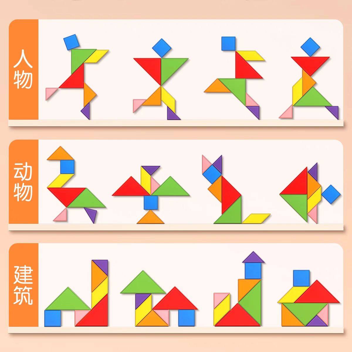 益智玩具七巧板积木一年级人教版学生幼儿园儿童教具木质拼图玩具