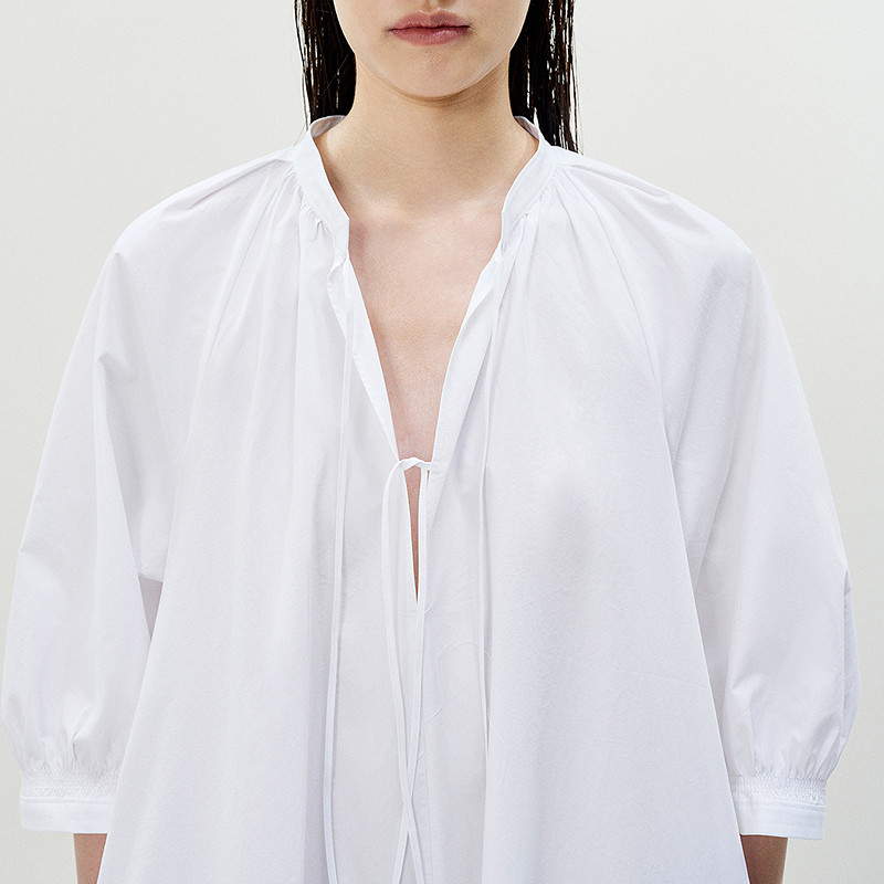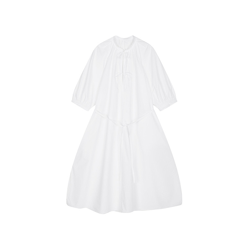 LESS度假风泡泡袖连衣裙气质全棉系带A字插肩袖廓形长裙2P3G20510