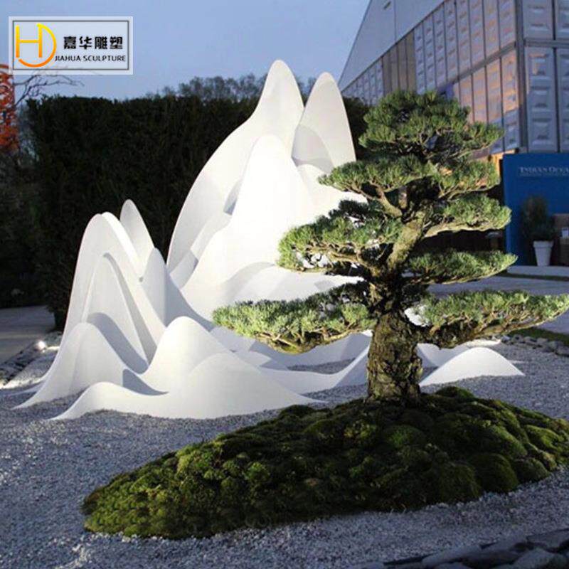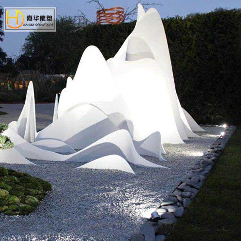 不锈钢抽象镜面片片假山石雕塑别墅门口层叠假山景观装饰摆件制作