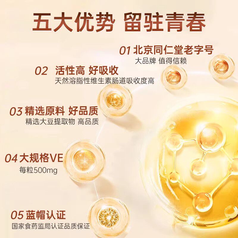北京同仁堂维生素e软胶囊美白淡斑去黄可口服外用正品官方旗舰店