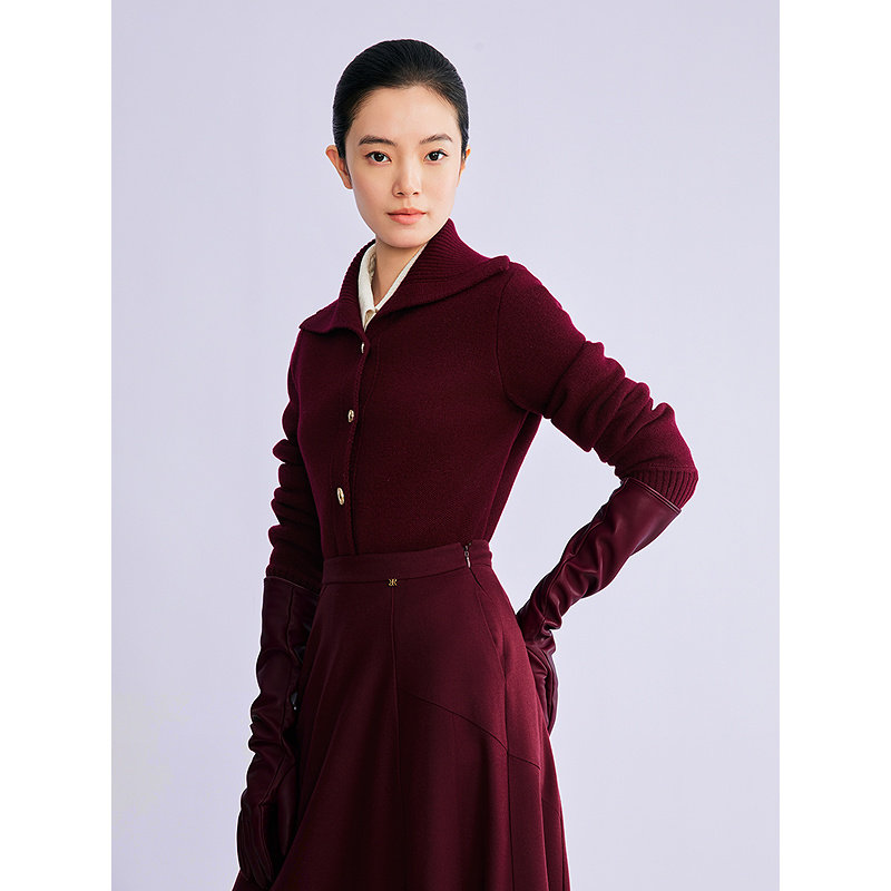 YINER音儿2026春季新款时尚海军领美丽诺羊毛羊绒混纺针织衫套头