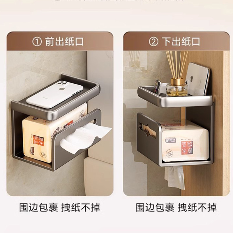 太空铝卫生间厕纸盒壁挂式卷纸挂架厕所抽纸盒洗手间免打孔纸巾架