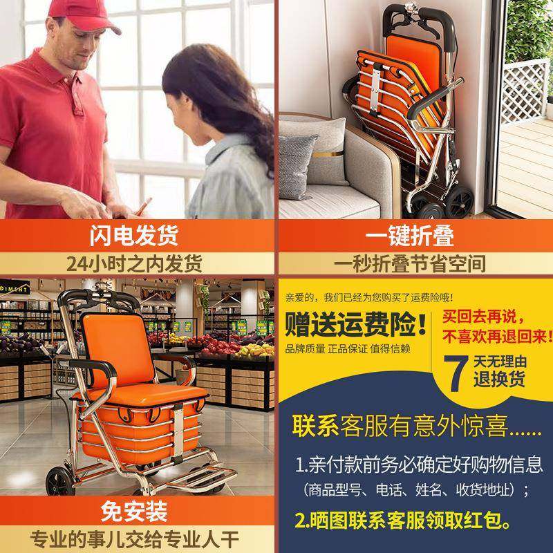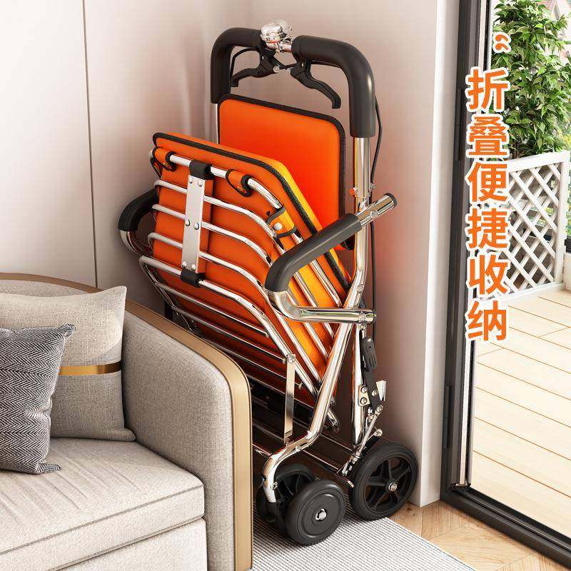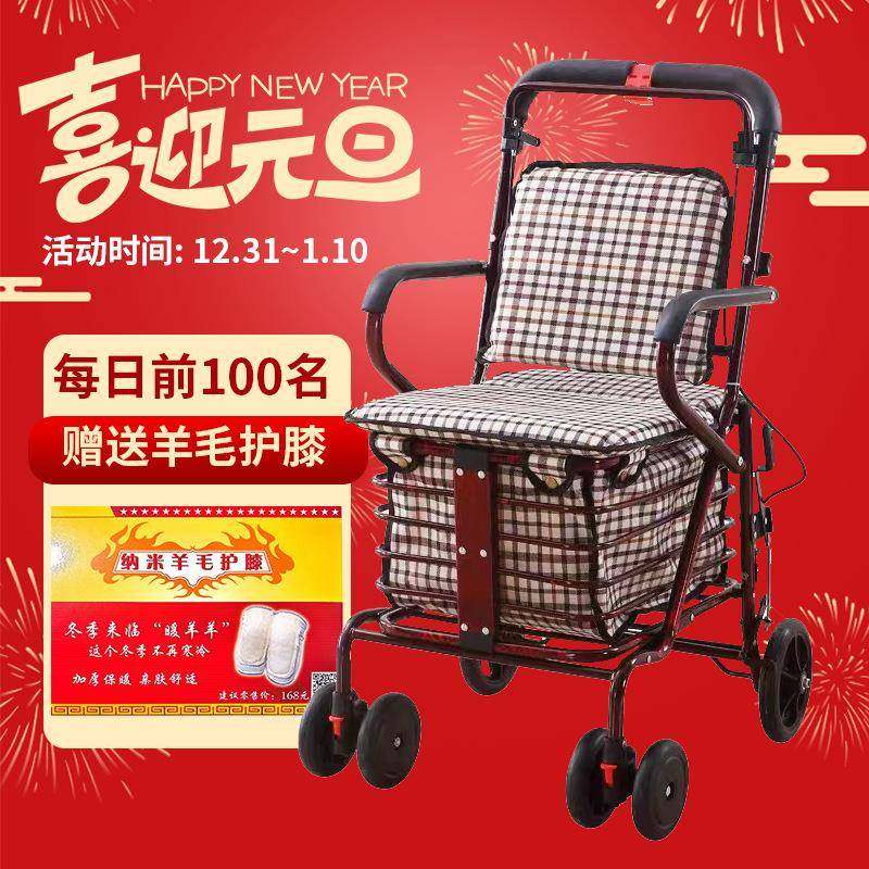 老人手推车可坐折叠代步助力购物小推车老年人坐的能推走小轮椅子
