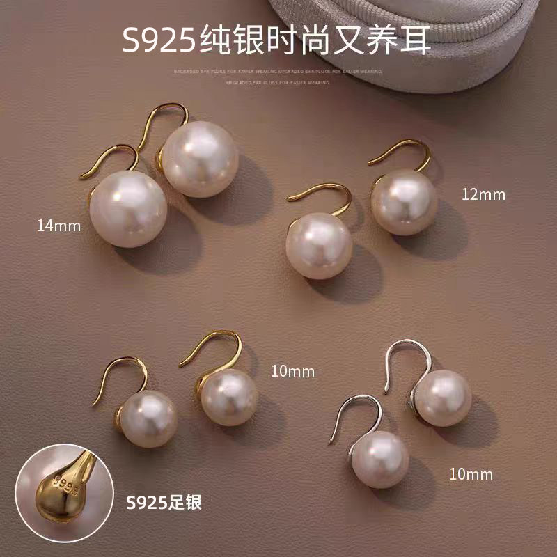 天然施家贝母珍珠耳环女新款925纯银耳钩饰轻奢高级感送妈妈礼物