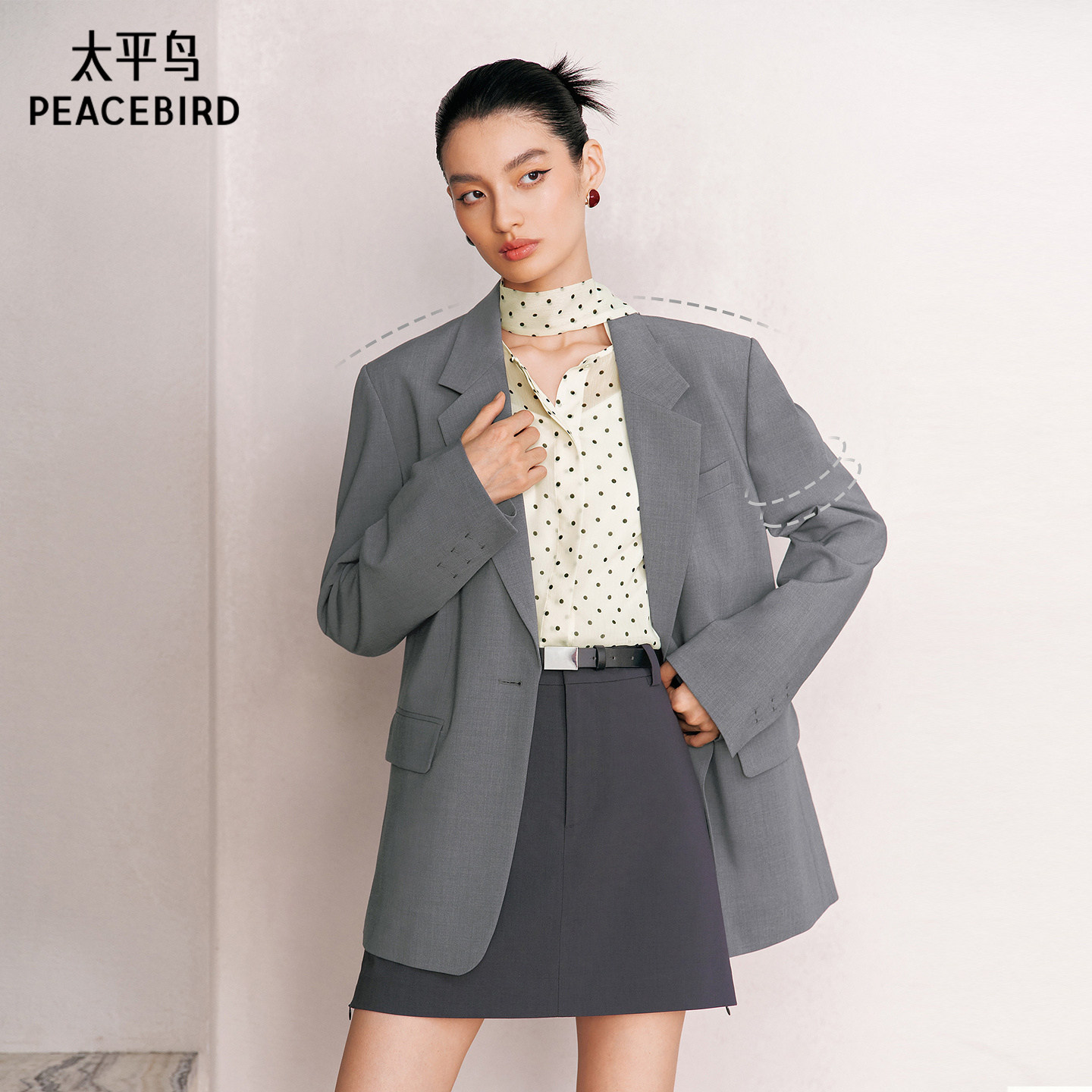 太平鸟纸片人西装平驳领经典廓形仪式感西装外套女挺括羊毛混纺
