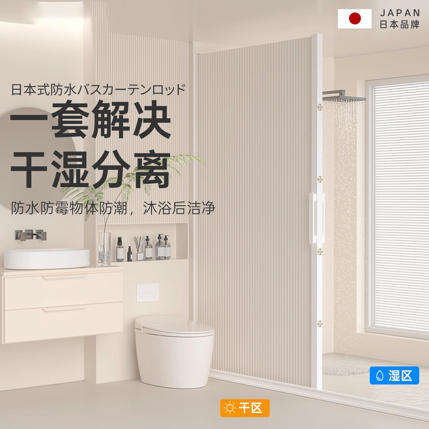 浴室磁吸隐形浴帘卫生间遮挡帘干湿分离防水帘防霉洗澡隔断帘