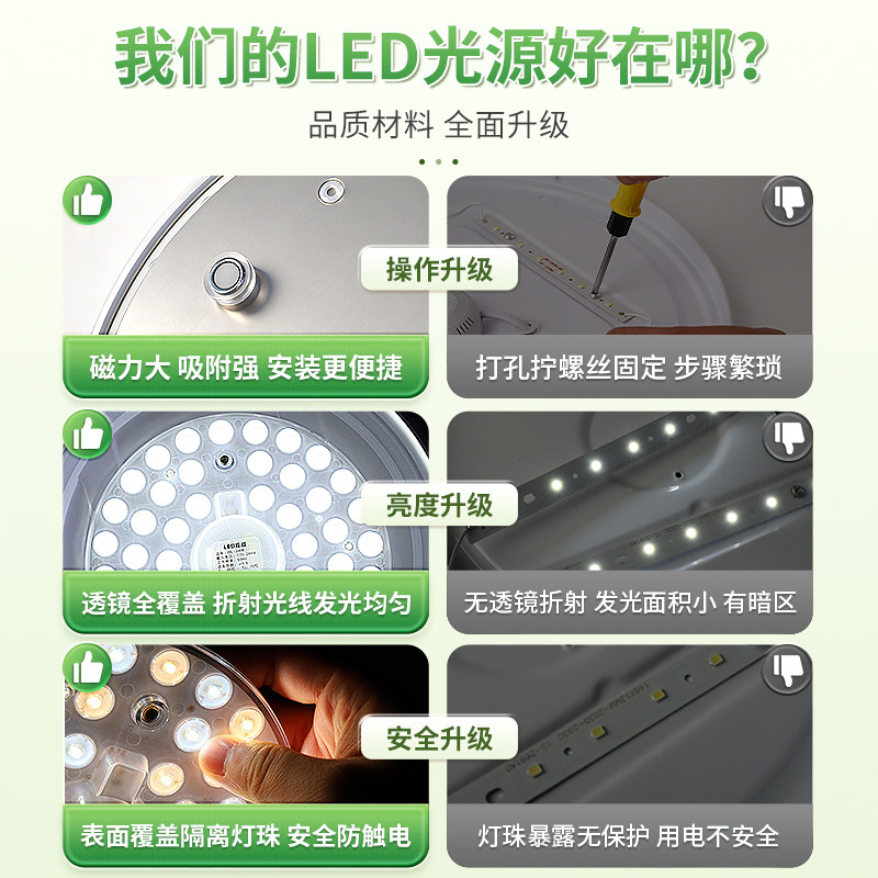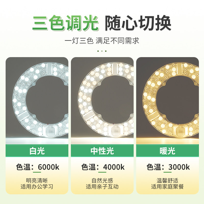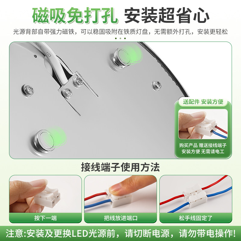 【全网】LED磁吸替换灯芯灯盘三色白光超亮改造模组安装简单