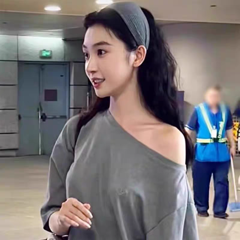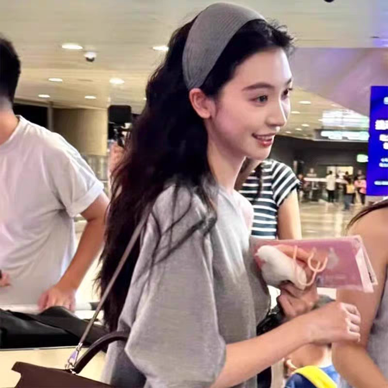 明星同款灰色宽边发箍女2025新款发卡高颅顶针织头箍发带发饰秋冬