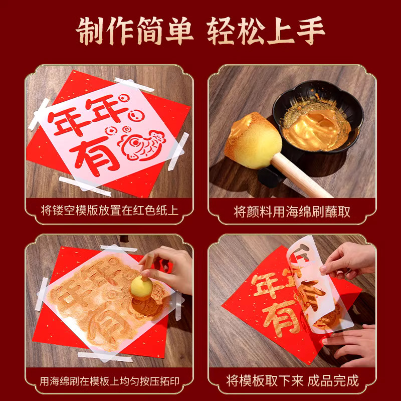 2026马年新春福字拓印材料包工具套装diy手工新年非遗儿童学生幼儿园大号涂鸦模版镂空模具福卡春节年画门贴