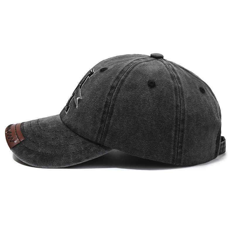 春秋季复古鸭舌帽男女士户外遮阳帽水洗牛仔做旧字母M刺绣棒球帽