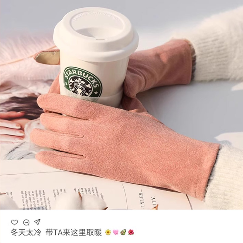 手套秋冬天女加绒保暖可爱德绒女士骑行防寒骑车防风触屏