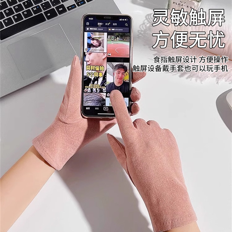 保暖手套女秋冬触屏加厚户外骑行开车德绒防风运动手套防冻男女款