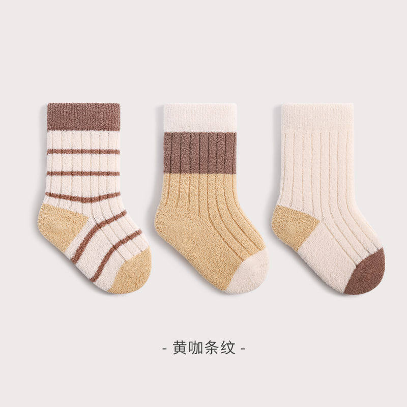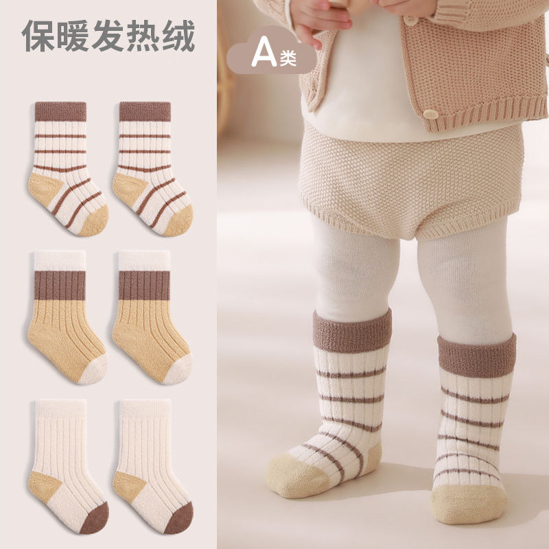 加厚婴儿袜子宝宝保暖中筒袜男女童加绒毛巾袜0-5岁新生儿睡眠袜