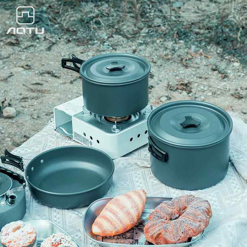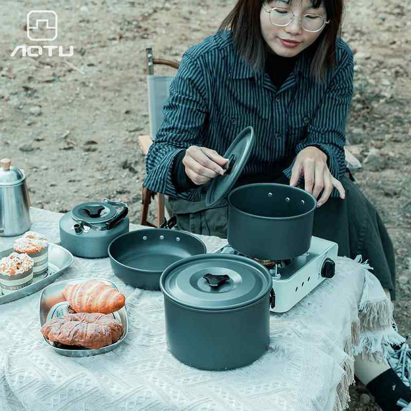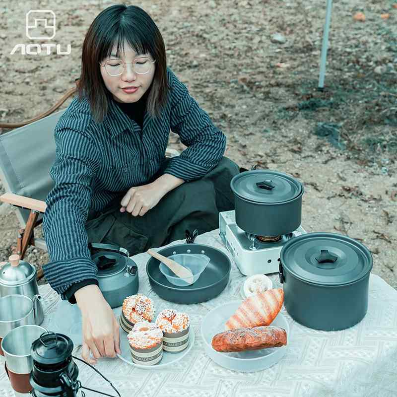 4-5人套锅户外露营野炊用品装备锅具组合套装不粘煎盘便携 TH0132