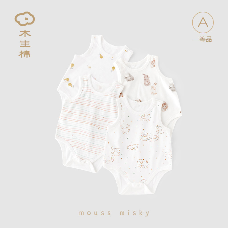 木生棉婴幼儿无袖连体衣夏季薄款宝宝透气背心三角哈衣包屁衣爬服